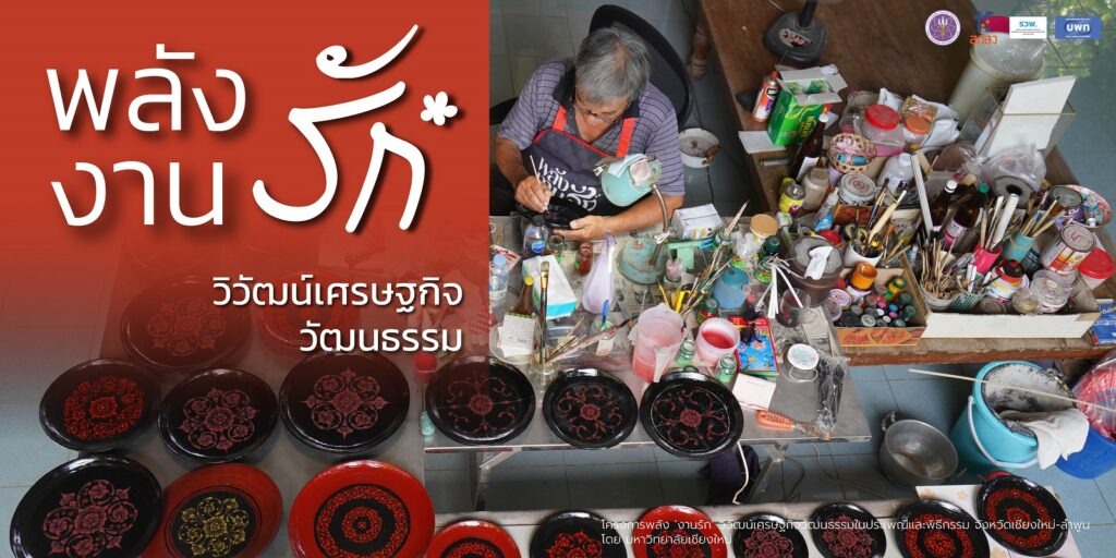 “เครื่องเขินล้านนา” มรดกทางภูมิปัญญาวัฒนธรรมที่เกิดจากการนำ “ยางรัก” ธรรมชาติมาสร้างสรรค์งานศิลป์บนเครื่องใช้สอยต่าง ๆ โดยเฉพาะไม้ถัก ไม้แกะสลัก บ่งบอกถึงเอกลักษณ์และวิถีชีวิต ฐานะทางสังคม และพิธีกรรมของชาวล้านนามากว่า 100 ปี ซึ่งปัจจุบันมรดกอันทรงคุณค่าดังกล่าวกำลังจะเลือนหายไป ทั้งด้วยความนิยมที่ลดลง วัตถุดิบมีราคาสูง ที่สำคัญคือ ผู้สืบทอดภูมิปัญญาที่นับวันยิ่งน้อยลง ด้วยเหตุปัจจัยเหล่านี้จึงนำมาสู่การฟื้นฟูและยกระดับเครื่องเขินตั้งแต่กระบวนการต้นน้ำ กลางน้ำ และปลายน้ำ เพื่อให้ตอบโจทย์ต่อความต้องการของผู้คนตามยุคสมัย โดยยังคงคุณค่าอันโดดเด่นและภูมิปัญญาวัฒนธรรมอันล้ำค่าไว้ในผลิตภัณฑ์ และยังก่อให้เกิดรายได้แก่คนในชุมชน ผ่านโครงการวิจัยพลัง ‘งานรัก’ วิวัฒน์เศรษฐกิจวัฒนธรรมในประเพณีและพิธีกรรม จังหวัดเชียงใหม่-ลำพูน โดยการสนับสนุนจากหน่วยบริหารจัดการทุนด้านการพัฒนาพื้นที่ ภายใต้กำกับ สำนักงานเร่งรัดการวิจัยและนวัตกรรมเพื่อเพิ่มความสามารถการแข่งขันและการพัฒนาพื้นที่ (องค์การมหาชน) หรือ รวพ.