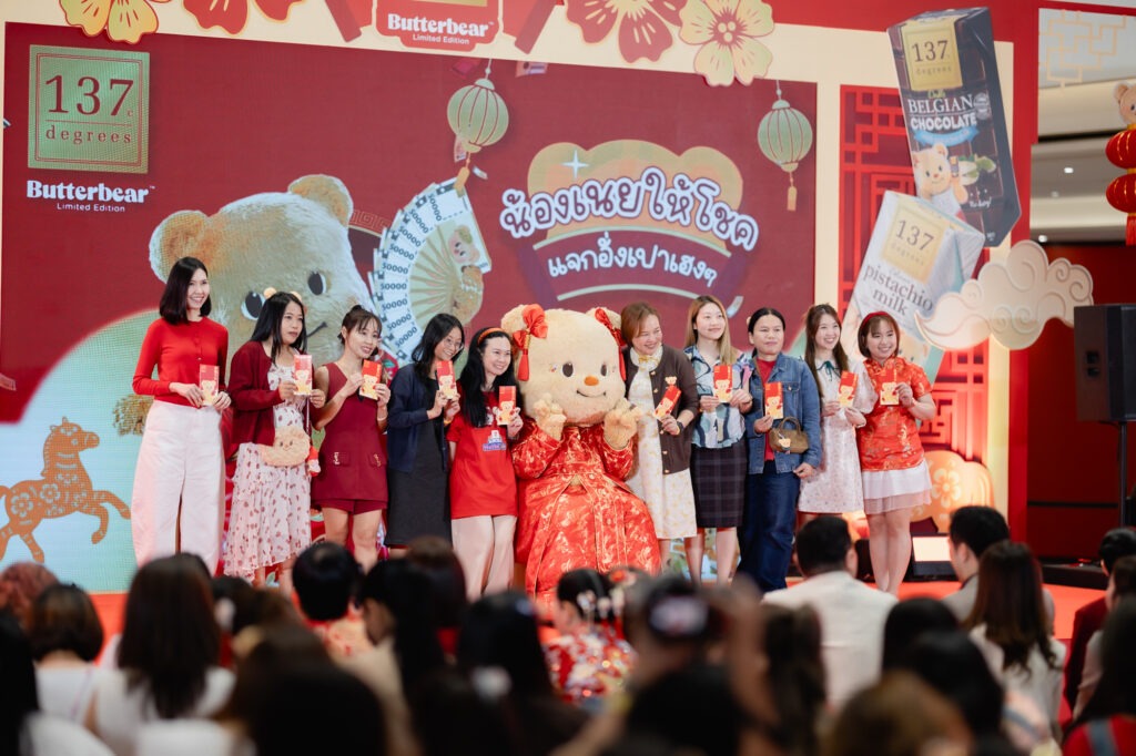 บริษัท ซิมเพิ้ล ฟู้ดส์ จำกัด ผู้ผลิตและจัดจำหน่ายผลิตภัณฑ์นมทางเลือกเพื่อสุขภาพภายใต้แบรนด์ 137 Degrees® จับมือกับคาแรกเตอร์ขวัญใจแฟนคลับอย่าง น้องเนย (Butterbear) เนรมิตงานกิจกรรมต้อนรับเทศกาลตรุษจีน 2569 ในงาน “น้องเนยให้โชค แจกอั่งเปาเฮงๆ” ณ Paragon Fashion Hall ชั้น 1 ศูนย์การค้าสยามพารากอน ท่ามกลางบรรยากาศอันแสนอบอุ่น เติมรอยยิ้ม และฮีลใจของการรวมมัมหมีครอบครัวคนรักน้องเนยและครอบครัว 137 Degrees อย่างล้นหลาม