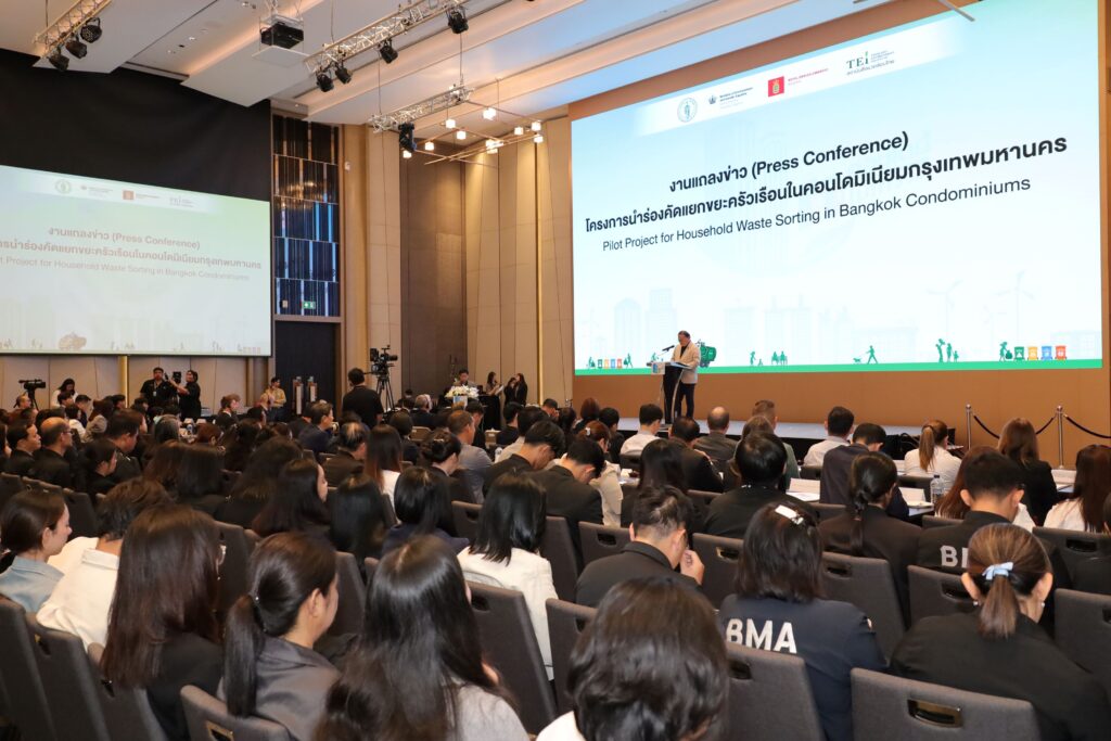 นายพรพรหม วิกิตเศรษฐ์ ที่ปรึกษาของผู้ว่าราชการกรุงเทพมหานครและผู้บริหารด้านความยั่งยืนกรุงเทพมหานครกล่าวว่า “ปัจจุบันกรุงเทพมหานครต้องแบกรับภาระในการจัดการมูลฝอยกว่า 9,000 ตันต่อวัน ซึ่งกว่าร้อยละ 50 คือ ขยะเศษอาหารที่ต้องแยกออกมาตั้งแต่ต้นทาง กทม. จึงขับเคลื่อนนโยบาย ‘ไม่เทรวม’ อย่างจริงจัง โดยยกระดับสู่การบังคับใช้ ข้อบัญญัติค่าธรรมเนียมการจัดการสิ่งปฏิกูลและมูลฝอยฉบับใหม่ พ.ศ. 2568 ที่ยึดหลักสากล “ผู้ก่อมลพิษเป็นผู้จ่าย” (Polluter Pays Principle) เพื่อใช้กลไกทางเศรษฐศาสตร์สร้างแรงจูงใจ โดยครัวเรือนที่คัดแยกขยะจะเสียค่าธรรมเนียมน้อยลง ส่วนผู้ที่ไม่คัดแยกจะต้องชำระในอัตราที่สูงขึ้น จึงนำไปสู่การริเริ่มโครงการ “บ้านนี้ไม่เทรวม แยกขยะลดค่าธรรมเนียม” ที่ได้รับเสียงตอบรับที่ดีและมีคอนโดมิเนียมจำนวนมากแสดงความจำนงเข้าร่วม อย่างไรก็ตาม แม้อาคารชุดหลายแห่ง มีความตั้งใจดี แต่อาจยังขาดระบบและแนวทางปฏิบัติที่เหมาะสมกับโครงสร้างอาคารสูง โครงการความร่วมมือในวันนี้ จึงเปรียบเสมือนจิ๊กซอว์ชิ้นสำคัญที่จะเข้ามาเติมเต็มช่องว่างดังกล่าว โดยโครงการได้คัดเลือกคอนโดมิเนียมในพื้นที่ เขตคลองเตยและเขตวัฒนา จำนวน 10 แห่ง ที่มีบริบทหลากหลาย มาถอดบทเรียนเพื่อสร้างโมเดลต้นแบบการจัดการขยะที่หลากหลายและยืดหยุ่น ให้คอนโดมิเนียมอื่น ๆ ทั่วกรุงเทพฯ สามารถนำไปประยุกต์ใช้ได้ง่าย อันจะเป็นรากฐานสำคัญ ในการขยายผลให้ครอบคลุมทั้ง 50 เขต และเป็นมาตรฐานที่สามารถขยายต่อไปยังพื้นที่อื่น ๆ รวมถึงภูมิภาคอาเซียน เพื่อร่วมกันฟื้นฟูสิ่งแวดล้อม สร้างระบบนิเวศเศรษฐกิจหมุนเวียน และคืนสมดุลให้โลกอย่างยั่งยืน”