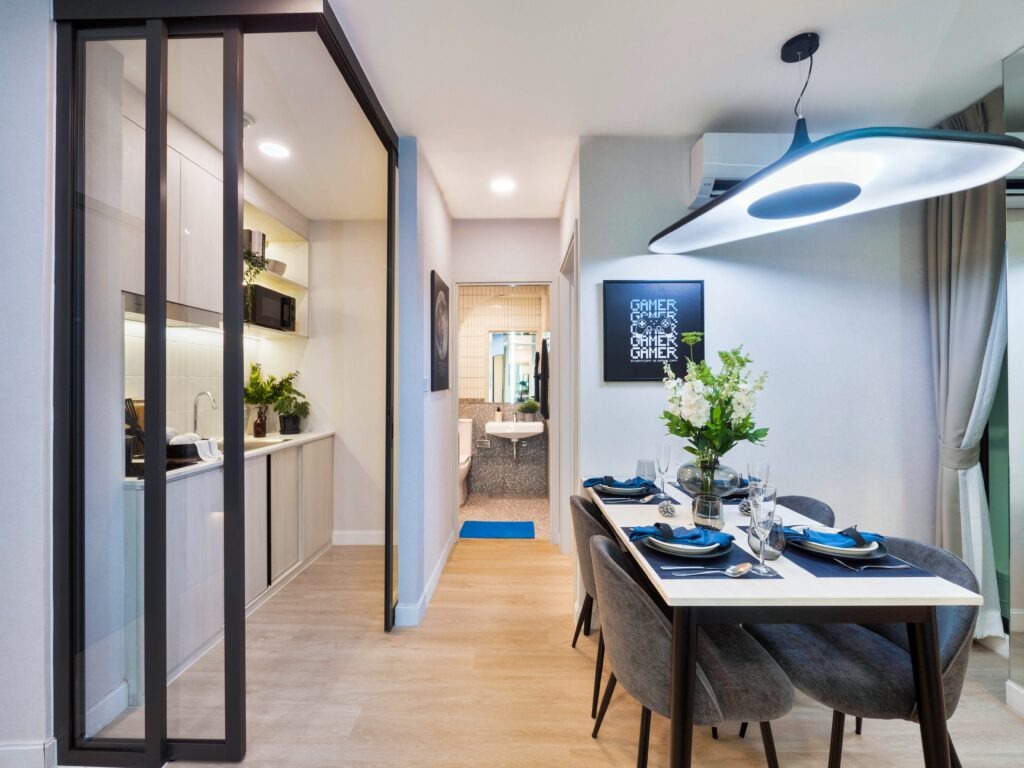 ส่วนรูปแบบห้องชุดมีให้เลือก 4 แบบ ประกอบด้วย แบบสตูดิโอ ขนาดพื้นที่ใช้สอยเริ่มต้น 23.75 ตร.ม. แบบ1 ห้องนอน พื้นที่ใช้สอย 24.48 – 29.86 ตร.ม. แบบ 1 ห้องนอนพลัส พื้นที่ใช้สอย 35.83 – 36.84 ตร.ม. และ แบบ 2 ห้องนอน พื้นที่ใช้สอย 43.86 – 44.14 ตร.ม. ตกแต่งแบบ Fully Furnished พร้อมม่านและซีลขอบยางบริเวณประตู ในราคาเริ่มต้นเพียง 1.79 ล้านบาท* หรือเฉลี่ยทั้งโครงการประมาณ 73,000 บาทต่อตารางเมตร โดยจะเปิดพรีเซลครั้งแรกในวันที่ 7-8 มีนาคม 2569 นี้ พร้อมโปรโมชั่นห้องราคาพิเศษ 1.29 ล้านบาท* และโปรโมชั่นทุกชั้น ราคาเดียว 1.69 ล้านบาท* จัดเต็มลุ้นรับของรางวัลในงาน รวมมูลค่ากว่า 1,000,000 บาท*