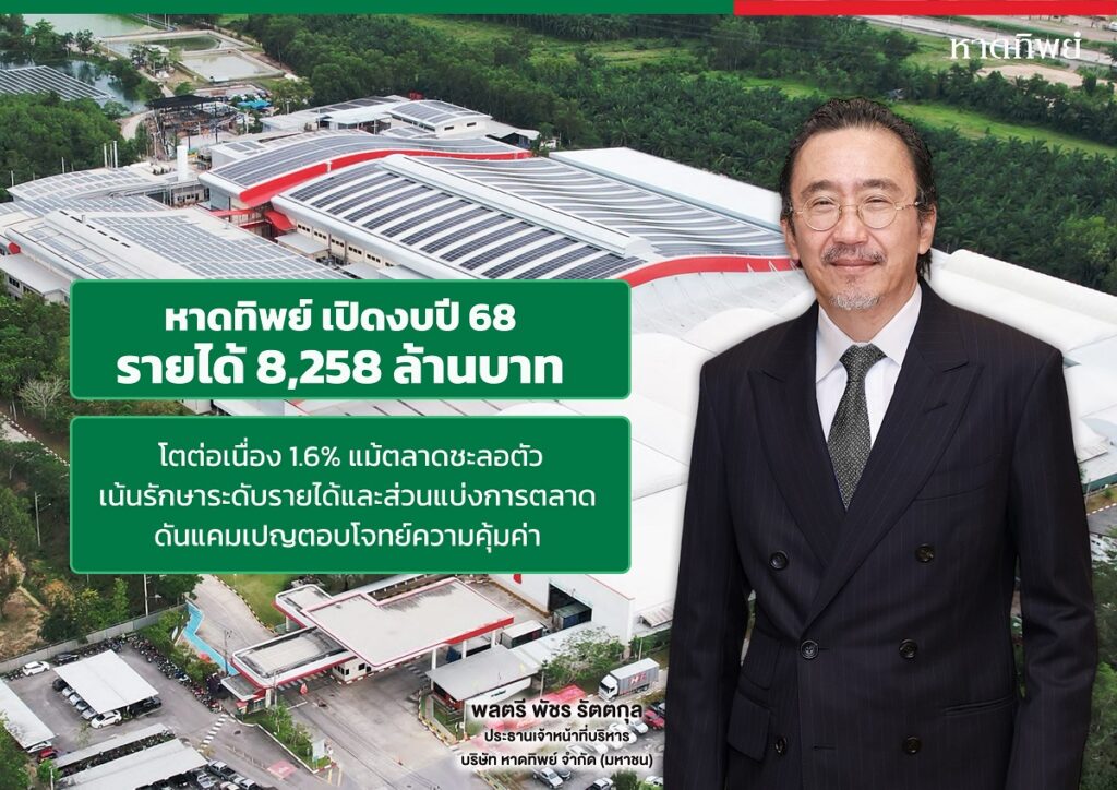 หาดทิพย์ (HTC) แถลงผลการดำเนินงานประจำปี 2568 โดยมีรายได้จากการขายเท่ากับ 8,258.4 ล้านบาท หรือเพิ่มขึ้น 1.6% เมื่อเทียบกับปี 2567 ซึ่งตัวเลขดังกล่าวสะท้อนให้เห็นถึงความสามารถ ในการปรับเปลี่ยนกลยุทธ์อย่างมีประสิทธิภาพในสถานการณ์เศรษฐกิจที่กำลังซื้อของประชาชนอ่อนแอ โดยบริษัทฯ เน้นจัดทำรายการส่งเสริมการขายที่เน้นความคุ้มค่าควบคู่ไปกับการสร้างการเติบโตของเครื่องดื่มกลุ่มไม่มีน้ำตาล (Zero Sugar) ทำให้บริษัทฯ สามารถรักษาระดับรายได้และความเป็นผู้นำของตลาดเครื่องดื่มภาคใต้ไว้ได้อย่างต่อเนื่อง