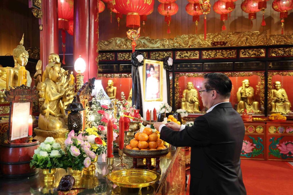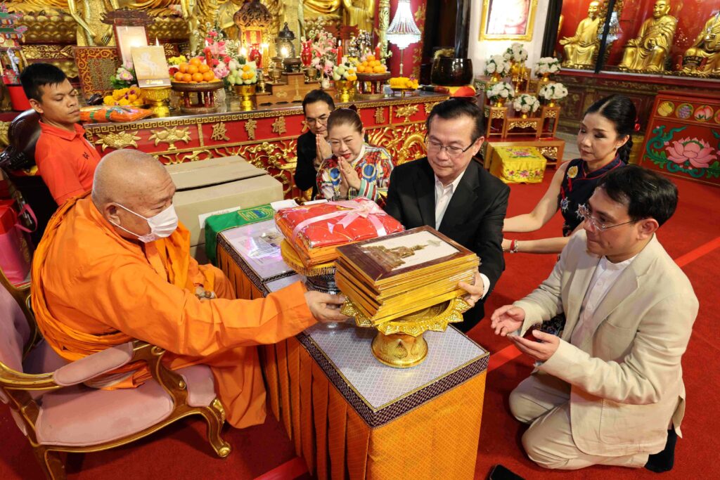 ดร.สมพร สืบถวิลกุล ประธานเจ้าหน้าที่บริหาร บริษัท ทิพย กรุ๊ป โฮลดิ้งส์ จำกัด (มหาชน) และกรรมการผู้จัดการใหญ่ บริษัท ทิพยประกันภัย จำกัด (มหาชน) พร้อมด้วยคณะผู้บริหาร เข้ากราบถวายปฏิทิน “พระพุทธนิมิตวิชิตมารโมลีศรีสรรเพชญบรมไตรโลกนาถ” หรือ “พระพุทธนิมิต” พระผู้มีชัยชนะเหนือหมู่มาร ประจำปี 2569 พร้อมถวายปัจจัยบำรุงอาราม ชุดผ้าไตรจีวร และจตุปัจจัยไทยธรรม แด่ พระคณาจารย์จีนธรรมวชิรานุวัตร (เย็นงี้) รองเจ้าคณะใหญ่จีนนิกาย เจ้าอาวาสวัดมังกรกมลาวาส (เล่งเน่ยยี่) ผู้รักษาการแทนเจ้าอาวาสวัดทิพยวารีวิหาร และผู้รักษาการแทนเจ้าอาวาสวัดบรมราชากาญจนาภิเษกอนุสรณ์ เพื่อนำไปมอบให้แก่ประชาชนและพุทธศาสนิกชน เป็นการเสริมสิริมงคล ณ วัดมังกรกมลาวาส (เล่งเน่ยยี่)