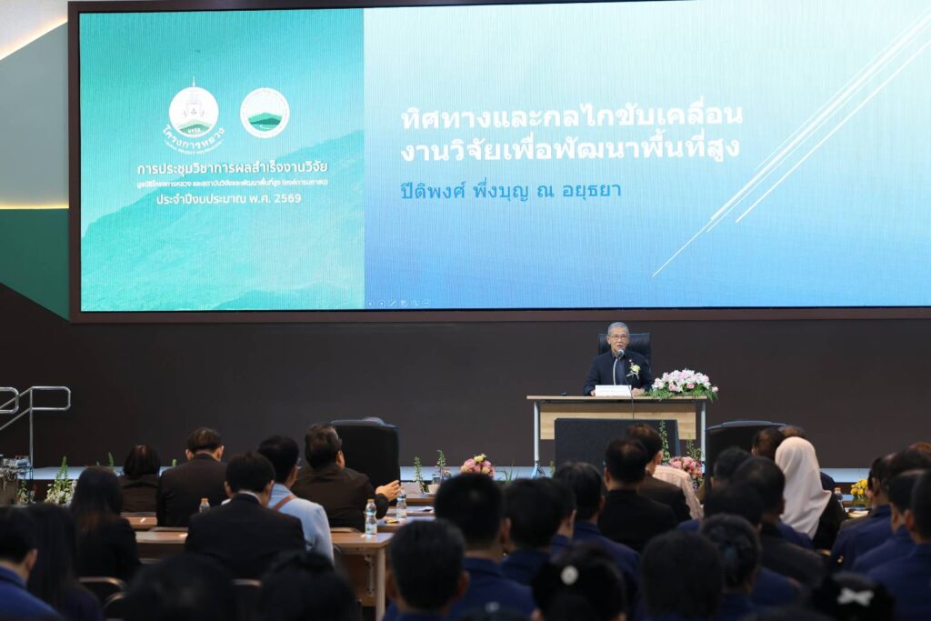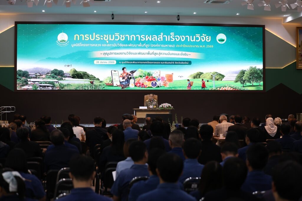 เมื่อวันที่ 26 มีนาคม 2569 มูลนิธิโครงการหลวง ร่วมกับ สถาบันวิจัยและพัฒนาพื้นที่สูง (องค์การมหาชน) หรือ สวพส. จัดการประชุมวิชาการ “คุณูปการผลงานวิจัยและพัฒนาพื้นที่สูง สู่ความมั่นคงและยั่งยืน” ประจำปีงบประมาณ พ.ศ. 2569 ณ ศูนย์วิจัยและพัฒนาการเกษตรโครงการหลวง ชนกาธิเบศรดำริ จังหวัดเชียงใหม่ โดยมี พลเอกกัมปนาท รุดดิษฐ์ องคมนตรี และประธานกรรมการบริหารมูลนิธิโครงการหลวง เป็นประธานในพิธีเปิด พร้อมด้วยผู้แทนจากหน่วยงานภาครัฐ ภาควิชาการ เครือข่ายวิจัย และเกษตรกรเข้าร่วมประชุม