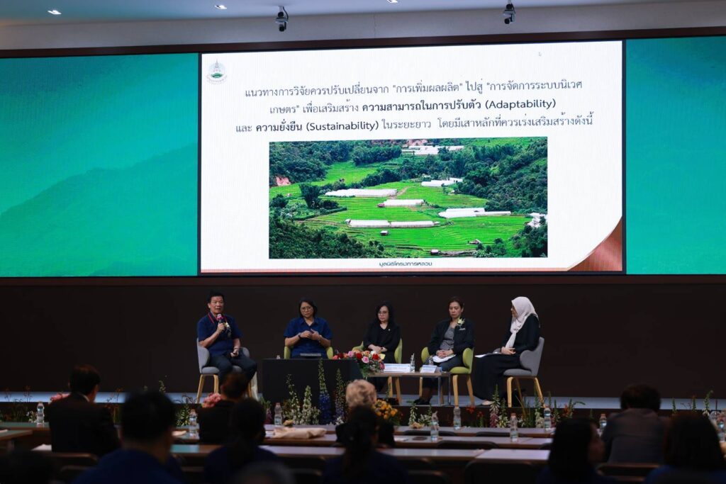 การจัดประชุมในครั้งนี้ เป็นการเผยแพร่ผลสำเร็จจากการดำเนินงานวิจัยและนวัตกรรม รวมถึงการต่อยอดผลงานวิจัยสู่การนำไปใช้ประโยชน์ ซึ่งก่อให้เกิด “คุณูปการ” ของงานวิจัยที่เป็นแรงขับเคลื่อนสำคัญต่อการพัฒนาพื้นที่สูงของประเทศไทยอย่างเป็นรูปธรรม ตลอดระยะเวลากว่า 55 ปี มูลนิธิโครงการหลวง ได้นำงานวิจัยมาเป็นกลไกหลักในการแก้ไขปัญหาและยกระดับคุณภาพชีวิตของประชาชนบนพื้นที่สูง ทั้งด้านอาชีพ รายได้ ความมั่นคงทางอาหาร และการฟื้นฟูทรัพยากรธรรมชาติ