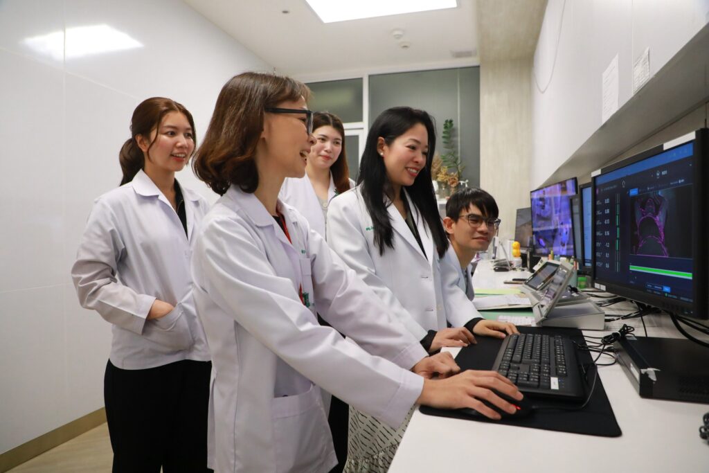 ทีมแพทย์จึงได้ไปศึกษาดูงานในต่างประเทศและพัฒนาร่วมกับนักฟิสิกส์การแพทย์ นักรังสีการแพทย์ และพยาบาล จนได้ระบบ SGRT ที่ใช้กล้อง 3 มิติแบบเรียลไทม์แทนเส้นขีด โดยสามารถระบุและตรวจสอบตำแหน่งการฉายรังสีได้อย่างแม่นยำตลอดการรักษา ผู้ป่วยสามารถทาครีมบำรุงผิวได้ตั้งแต่วันแรก ลดการระคายเคืองและอาการไหม้ของผิวหนังได้อย่างมีนัยสำคัญ