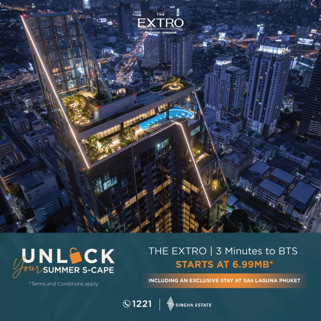 โครงการ “ดิ เอ็กซ์โทร พญาไท–รางน้ำ” (THE EXTRO Phayathai–Rangnam) คอนโดมิเนียมแนวคิด Wellness ใจกลางเมือง ติดสวนสันติภาพกว่า 20 ไร่ ราคาพิเศษ 6.99 ล้านบาท* เฉพาะยูนิตที่ร่วมรายการ รับแพ็กเกจที่พัก SAii Laguna Phuket 3 วัน 2 คืน ห้อง Beach Access Suite