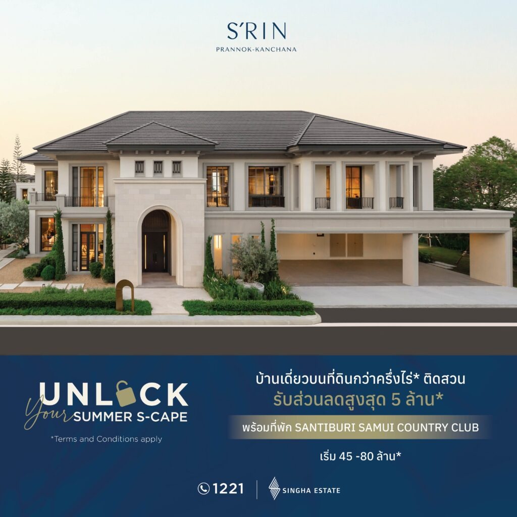 บริษัท สิงห์ เอสเตท จำกัด (มหาชน) หรือS ผู้พัฒนาและลงทุนในอสังหาริมทรัพย์ระดับสากล จัดแคมเปญ Unlock Your Summer S-Cape” ชวนเปิดประสบการณ์ซัมเมอร์เหนือระดับ พร้อมมอบเอกสิทธิ์สุดเอ็กซ์คลูซีฟ รับส่วนลดสูงสุด 20 ล้านบาท และทริปพักผ่อนสุดหรู สำหรับลูกค้าที่จองและโอนกรรมสิทธิ์บ้านและคอนโด ตั้งแต่วันนี้ – 31 พฤษภาคม 2569 รับแพ็กเกจทริปพักผ่อน 3 วัน 2 คืน ที่ โรงแรมระดับลักชูรีในเครือสิงห์ เอสเตท พร้อมผสานการเดินทางอย่างไร้รอยต่อด้วยสายการบิน Bangkok Airways เพื่อประสบการณ์การพักผ่อนที่ลงตัวในทุกรายละเอียด