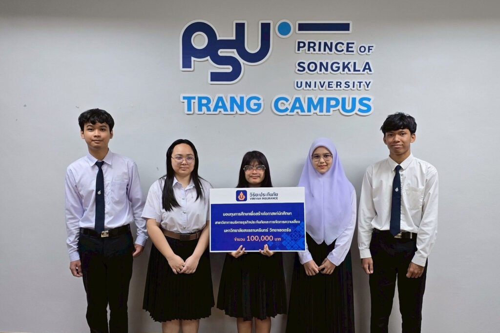 ผศ. ดร.ปาริชาติ มณีมัย คณบดีคณะพาณิชยศาสตร์และการจัดการ มหาวิทยาลัยสงขลานครินทร์ วิทยาเขตตรัง รับมอบทุนการศึกษา มูลค่า 100,000 บาท จากบริษัท วิริยะประกันภัย จำกัด (มหาชน) โดยมี นางเสาวคนธ์ วงศ์กองแสง ผู้จัดการฝ่ายปฏิบัติการภาค 5 (ภาคใต้) ด้านสาขา เป็นผู้แทนมอบ เพื่อส่งเสริมโอกาสทางการศึกษาให้แก่นักศึกษาชั้นปีที่ 1 ในหลักสูตรด้านประกันภัยและการจัดการความเสี่ยง สาขาการบริหารธุรกิจประกันภัยและการจัดการความเสี่ยง สามารถพัฒนาศักยภาพการเรียนรู้ของตนเองได้อย่างมีประสิทธิภาพ โดยมี ผศ. ดร.พงษ์พิช เพชรสกุลวงศ์ ประธานหลักสูตรบริหารธุรกิจบัณฑิต สาขาการบริหารธุรกิจประกันภัยและการจัดการความเสี่ยง และผศ. ดร.ณรงค์ฤทธิ์ ปริสุทธิ์กุล ผู้ช่วยอธิการบดีฝ่ายวิชาการและวิจัย ร่วมเป็นเกียรติในพิธีมอบ ณ ห้องประชุม MBA มหาวิทยาลัยสงขลานครินทร์ วิทยาเขตตรัง