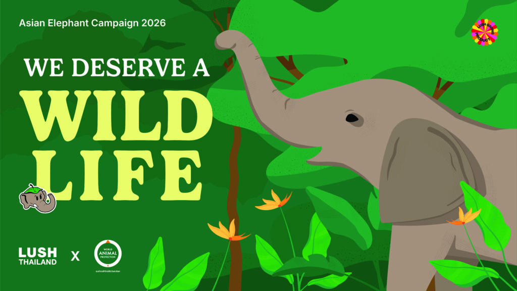 เราขอเชิญชวนทุกคนร่วมเป็นส่วนหนึ่งของแรงขับเคลื่อนนี้ เพียงร่วมแสดงพลังผ่านแฮชแท็ก #LUSHThailand #LUSHxWAPTH และ #WeDeserveAWildLife บนโซเชียลมีเดีย เพื่อประกาศให้โลกรู้ว่าคนไทยพร้อมจะดูแลและปกป้องชีวิตที่งดงามเหล่านี้ เพราะ “ช้าง” ไม่ใช่เพียงสัญลักษณ์ แต่คือชีวิตที่มีความรู้สึก มีความเจ็บปวด และมีความสุขไม่ต่างจากพวกเรา พวกเขาควรได้รับเกียรติ และความเป็นอยู่ที่ดียิ่งขึ้นกว่าปัจจุบัน