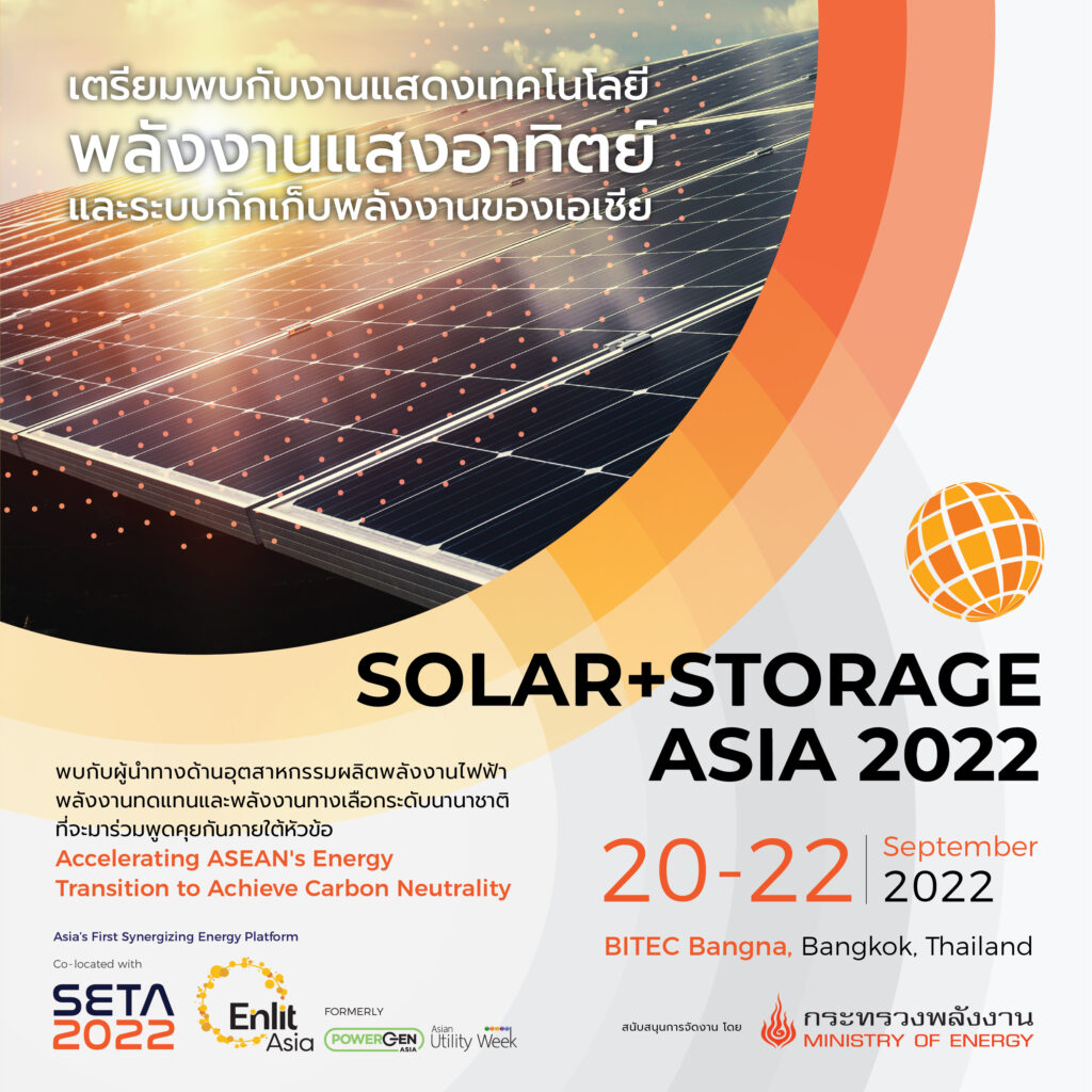 โดยในปีนี้SETA และ Enlit Asia 2022 (การรวมกันของ PowerGen Asia และ Asian Utility Week) ร่วมกับ SOLAR+STORAGE ASIA 2022 (SSA) เป็นการรวมตัวครั้งประวัติศาสตร์มาร่วมกันพูดคุยกันภายใต้หัวข้อ “Accelerating ASEAN’s Energy Transition to Achieve Carbon Neutrality” เพื่อให้สอดคล้องกับ นโยบายพลังงานและเศรษฐกิจของรัฐบาล ตามการประกาศเจตนารมณ์ในเวทีการประชุม COP26 ผู้นําโลกร่วมเจรจา เร่งดําเนินงานแก้ปัญหาการเปลี่ยนแปลงสภาพภูมิอากาศ และลด ก๊าซคาร์บอนไดออกไซด์ของประเทศตนเอง คุณจะได้พบกับผู้นําทางด้านอุตสาหกรรมผลิตพลังงานไฟฟ้า พลังงานทดแทนและพลังงาน ทางเลือกระดับนานาชาติที่จะมาร่วมพูดคุยถึง ปัญหา อุปสรรค และวิธีการแก้ไข เพื่อนําเสนอ ทางเลือกในการผลิตพลังงานทดแทนด้วยแสงอาทิตย์ และระบบกักเก็บพลังงาน