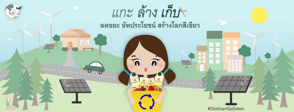 ดอยคำชวนร่วมรักษ์โลก อนุรักษ์สิ่งแวดล้อมไปกับการจัดการขยะอย่างถูกวิธี เพียงนำกล่องยูเอชทีผ่านขั้นตอนการ “แกะ ล้าง เก็บ” แล้ว มาบริจาคที่ร้านดอยคำทุกสาขา สำหรับนำไปใช้เป็นวัตถุดิบในการผลิต พาเลทดอยคำ กรวยจราจร เก้าอี้อเนกประสงค์ กระถางต้นไม้ หรือผลิตภัณฑ์จากวัสดุรีไซเคิลอื่นๆ อีกมากมาย เพื่อเป็นการจัดการขยะประเภทกล่องยูเอชที ซึ่งเป็นกระดาษมัลติเลเยอร์ ที่ยากต่อการกำจัด หรือรีไซเคิลด้วยวิธีปกติ และเป็นทางออกของปัญหา “ขยะกำพร้า” ประเภทกล่องยูเอชทีต่อไป