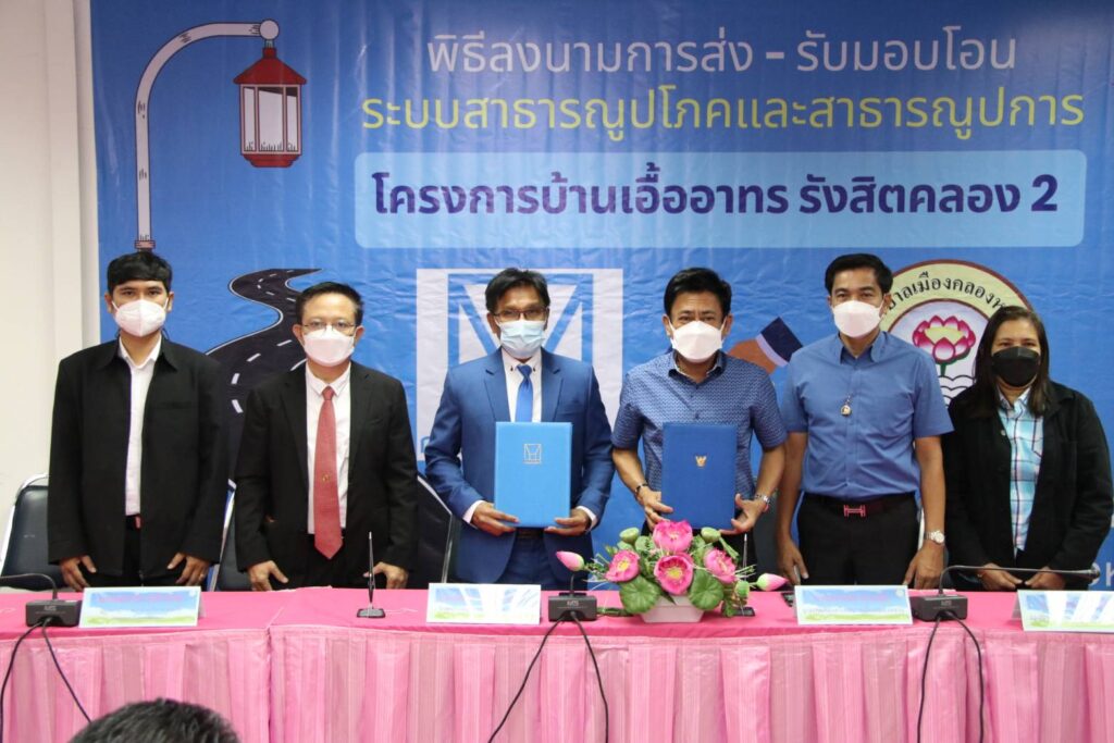 โครงการบ้านเอื้ออาทรรังสิตคลอง 2 จ้างสร้างเป็นบ้านแถว 2 ชั้น จำนวน 1,375 หน่วย เริ่มส่งมอบให้ลูกค้าเข้าอยู่อาศัยได้ตั้งแต่ปี พ.ศ. 2561 ปัจจุบันมีผู้อยู่อาศัยเข้าอยู่ประมาณ 3,000 คน การเคหะแห่งชาติจึงได้มอบโอนทรัพย์สินส่วนกลางของโครงการดังกล่าวให้กับเทศบาลเมืองคลองหลวง อาทิ ถนนและทางเท้าในโครงการ ท่อระบายน้ำ บ่อพักพร้อมส่วนควบ ไฟฟ้าสาธารณะ สวนสาธารณะ และสนามเด็กเล่น เป็นต้น เพื่อให้เทศบาลเมืองคลองหลวงเข้ามาดูแล บริหารจัดการเกี่ยวกับระบบสาธารณูปโภคและสาธารณูปการต่างๆ ภายในโครงการ เพื่ออันก่อให้เกิดประโยชน์สูงสุดกับผู้อยู่อาศัย ในการยกระดับคุณภาพชีวิตและการพัฒนาสภาพแวดล้อมด้านต่าง ๆ ให้ดียิ่งขึ้น ซึ่งเป็นไปตามพระราชบัญญัติกำหนดแผนและขั้นตอนการกระจายอำนาจให้แก่องค์กรปกครองส่วนท้องถิ่น พ.ศ. 2542