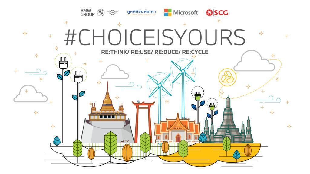 ครั้งแรกของความร่วมมือกันระหว่างองค์กรชั้นนำระดับโลกและประเทศจากสี่องค์กร บีเอ็มดับเบิลยู กรุ๊ป ประเทศไทย มูลนิธิชัยพัฒนา ไมโครซอฟท์ ประเทศไทย และเอสซีจี เพื่อส่งเสริมและผลักดันให้นิสิต นักศึกษาไทยได้แสดงศักยภาพการออกแบบแนวคิดด้านความยั่งยืนที่จะสร้างผลกระทบเชิงบวกแก่สิ่งแวดล้อมและสังคม ในโครงการ Choice is Yours ซึ่งจัดขึ้นเพื่อสนับสนุนการต่อยอดแนวคิดของคนรุ่นใหม่ที่มีต่อการรักษาสิ่งแวดล้อมอย่างยั่งยืน ผ่านการพัฒนาโครงการต่าง ๆ ที่นำมาใช้ได้จริงในชีวิตประจำวัน พร้อมเปิดรับทีมนิสิต นักศึกษาไม่จำกัดคณะหรือชั้นปี ซึ่งสามารถเลือกแนวคิดในการนำเสนอผลงาน ได้แก่ REduce กับบีเอ็มดับเบิลยู กรุ๊ป ประเทศไทย REuse กับมูลนิธิชัยพัฒนา REthink กับไมโครซอฟท์ ประเทศไทย และ REcycle กับเอสซีจี โดยมีผู้เชี่ยวชาญจากทั้ง 4 องค์กรร่วมเป็นผู้ให้คำปรึกษาและตัดสิน โดยเปิดรับสมัครตั้งแต่วันที่ 29 มิถุนายน 2565 ประกาศผลผู้มีสิทธิ์เข้าร่วมโครงการ 20 ทีมในวันที่ 5 สิงหาคม 2565 และประกาศรางวัลชนะเลิศในเดือนพฤศจิกายน 2565 ทั้งนี้ ทีมผู้ชนะจะได้รับโอกาสเข้าร่วมฝึกงานกับองค์กรผู้เชี่ยวชาญในแต่ละด้านอีกด้วย