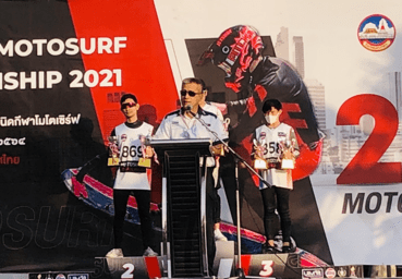 ในปี 2563 คณะกรรมการโอลิมปิคแห่งประเทศไทย ได้มอบให้ สมาคมกีฬาเรือเร็วแห่งประเทศไทย (TPBA) เตรียมความพร้อมเพื่อเข้าร่วมการแข่งขันกีฬา The Sixth Asian Beach Game Santa 2021  ณ เมืองซานย่า สาธารณรัฐประชาชนจีน  ระหว่าง 2-10 เม.ย.2564 TPBA  ในฐานะสมาชิก UIM  จึงได้บรรจุกีฬา MotoSurf  ให้เป็นอีกชนิดกีฬาภายใต้กำกับดูแลของ TPBA