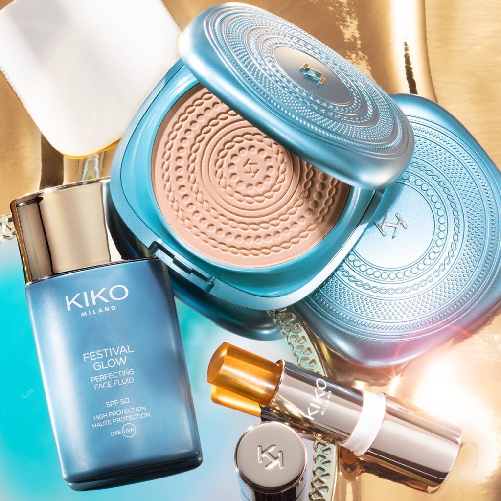 เตรียมตัวให้พร้อมกับช่วงเวลาแห่งความสุขและความสนุกกับทุกเทศกาลงานดนตรีในช่วง Summer ด้วย KIKO MILANO Festival Glow Collection คอลเลคชั่นที่นำเอาช่วงเวลาอันแสนตราตรึงด้วยออร่าความเปล่งประกายเมทัลลิค พุ่งสุดตัวในทุกปาร์ตี้เสมือนมีสปอร์ตไลท์ สาดส่องมาที่เราในทุกย่างก้าว สีเอิร์ธโทนเข้ากับทุกเฉด เติมประกายเปล่งปลั่งด้วยสีทองดุจทะเลทราย ครีเอทลุคสวยได้ยาวนานตลอดวัน แพคเกจสีเทอร์ควอยซ์ (Turquoise) เจือด้วยสีทองอร่าม ให้ฟีลลิ่งความหรูหราแบบวินเทจ เหมาะกับลุคงานเทศกาลดนตรีเก๋ๆ เพื่อความโดดเด่นท่ามกลางฝูงชนมหาศาล