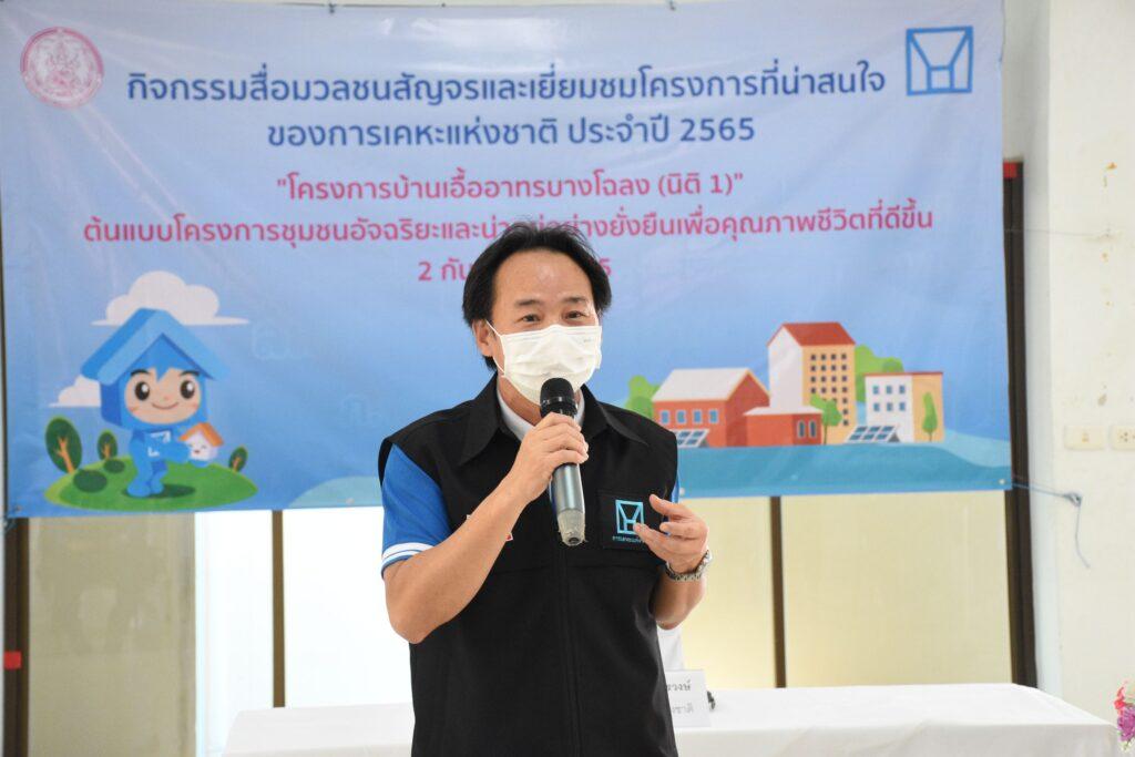 การเคหะแห่งชาติจัดกิจกรรมสื่อมวลชนสัญจรและเยี่ยมชมโครงการที่น่าสนใจของการเคหะแห่งชาติ ประจำปี 2565 โดย นายทวีพงษ์ วิชัยดิษฐ ผู้ว่าการการเคหะแห่งชาติ มอบหมาย นายดุลมลชัย วิวัฒน์บวรวงษ์ นางชฎารัตน์ ไชยเสน ผู้ช่วยผู้ว่าการการเคหะแห่งชาติ นายเอกพล เทพมณี ผู้ช่วยผู้ว่าการการเคหะแห่งชาติ และนางสาววนิดา สุทธิช่วย ผู้ช่วยผู้ว่าการการเคหะแห่งชาติ นำคณะสื่อมวลชนลงพื้นที่เยี่ยมชมโครงการ บ้านเอื้ออาทรบางโฉลง (นิติ 1) ซึ่งเป็นต้นแบบของโครงการชุมชนอัจฉริยะและน่าอยู่อย่างยั่งยืนเพื่อพัฒนาคุณภาพชีวิตที่ดีขึ้น (Smart and Sustainable Community for Better Well-being : SSC) ที่มีความโดดเด่นเรื่องกระบวนการมีส่วนร่วมของผู้อยู่อาศัยในชุมชนจนทำให้เกิดการพัฒนาชุมชนครอบคลุมทุกมิติ
