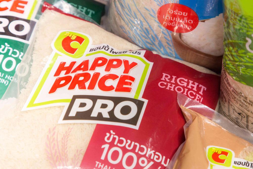 บิ๊กซี ซูเปอร์เซ็นเตอร์ สนับสนุนเกษตรกรไทยและชุมชนท้องถิ่น ให้เติบโตไปด้วยกันอย่างยั่งยืน ร่วมพัฒนาผลิตภัณฑ์ข้าวเพื่อจัดจำหน่ายส่งตรงถึงผู้บริโภค ภายใต้แบรนด์ “บิ๊กซี แฮปปี้ ไพรซ์ โปร” (Big C Happy Price Pro) กับสโลแกน “มือโปรมั่นใจ ราคาก็แฮปปี้” คัดสรรข้าวพันธุ์ที่ดีที่สุด ด้วยข้าวหอมมะลิแท้ 100% จากจังหวัด สุรินทร์, จังหวัดอุบลราชธานี จังหวัดศรีสะเกษ และจังหวัดร้อยเอ็ด ซึ่งเป็นแหล่งเพราะปลูกข้าวที่ดีที่สุดในประเทศไทย ที่ผ่านกระบวนการผลิตพิถีพิถันทุกขั้นตอน เพื่อให้ได้ข้าวที่สะอาดได้มาตรฐาน คัดเมล็ดยาวเรียงตัวสวย ผิวเรียบตลอดทั้งเมล็ด เมื่อนำไปหุงจะมีความเหนียวนุ่ม และมีกลิ่นหอมกรุ่น น่ารับประทาน โดยมีให้ท่านเลือกทานหลากหลายสายพันธุ์ตามความชอบ ได้แก่