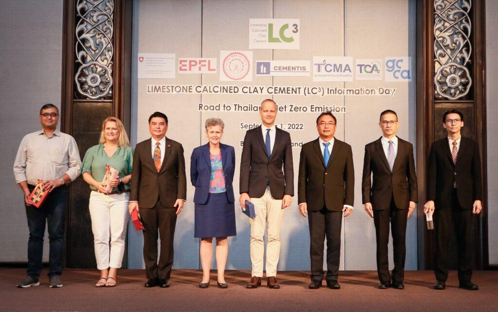 นายชนะ ภูมี (ที่ 3 จากขวา) นายกสมาคมอุตสาหกรรมปูนซีเมนต์ไทย (TCMA)ให้การต้อนรับผู้เชี่ยวชาญด้านซีเมนต์และคอนกรีต ในงานสัมมนาเรื่อง “LIMESTONE CALCINED CLAY CEMENT (LC3) Information Day” เพื่อขับเคลื่อนThailand Net Zero Cement & Concrete Roadmap 2050 ให้บรรลุเป้าหมาย พร้อมแลกเปลี่ยนข้อมูลด้านเทคนิคการผลิตซีเมนต์คาร์บอนต่ำ โดยมี สมาชิกสมาคมอุตสาหกรรมปูนซีเมนต์ไทย และสมาชิกสมาคมคอนกรีตแห่งประเทศไทย และภาคการศึกษา เข้าร่วมงาน ณ ห้องแกรนด์ บอลรูม โรงแรมเซ็นจูรี่ พาร์ค กรุงเทพฯ