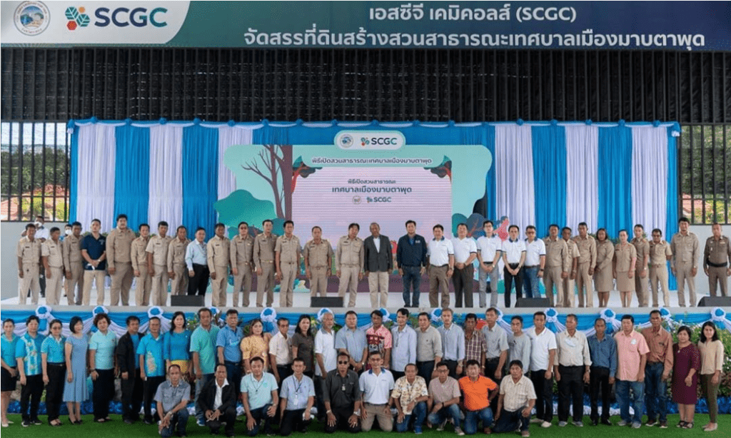 เอสซีจี เคมิคอลส์ หรือ SCGC ผู้นำธุรกิจเคมีภัณฑ์ครบวงจรเพื่อความยั่งยืน ดำเนินธุรกิจตามหลักบรรษัทภิบาล มุ่งดูแลสังคมและสิ่งแวดล้อมตามแนวทาง ESG (Environmental, Social and Governance) พร้อมทั้งดำเนินกิจการทางสังคมและการมีส่วนร่วมกับชุมชนอย่างต่อเนื่อง เพื่อยกระดับคุณภาพชีวิตให้กับชุมชน ส่งเสริมอาชีพ และสร้างวิถีสังคมคาร์บอนต่ำ โดยบริษัทฯ ได้จัดสรรและส่งมอบที่ดินเนื้อที่ประมาณ 14 ไร่ 3 งาน ให้แก่เทศบาลเมืองมาบตาพุดเพื่อใช้เป็นสาธารณประโยชน์แก่ชุมชนโดยรอบ ซึ่งเป็นการทดแทนพื้นที่สาธารณประโยชน์ที่ได้ขอถอนสภาพไปก่อนหน้านี้ โดยเทศบาลฯ ได้นำพื้นที่ดังกล่าวมาจัดสร้างเป็นสวนสาธารณะเทศบาลเมืองมาบตาพุด เพื่อเพิ่มพื้นที่สีเขียวปอดแห่งใหม่ให้ชุมชน นอกจากนี้ยังจะเป็นศูนย์รวมของผู้ที่รักสุขภาพและเป็นสถานที่สำหรับทำกิจกรรมร่วมกันของคนในชุมชน โดย SCGC จะเดินหน้าพัฒนากระบวนการคัดแยกขยะอย่างครบวงจรตามหลักเศรษฐกิจหมุนเวียน เพื่อส่งเสริมวิถีสังคมคาร์บอนต่ำ ตอบเป้าหมาย ESG