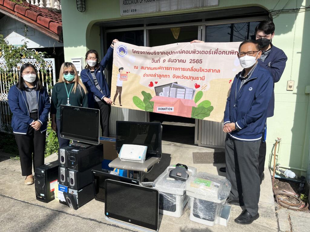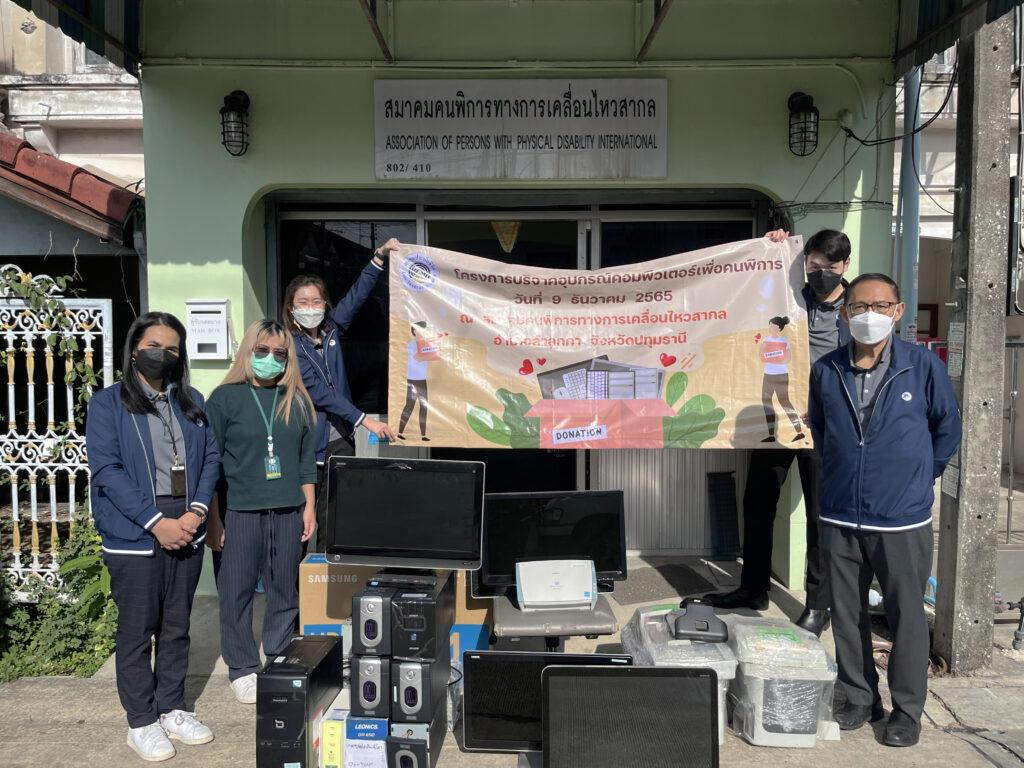 วันที่ 9 ธันวาคม 2565 นายนพพล เบี้ยวไข่มุข ผู้จัดการกองทุนประกันชีวิตพร้อมพนักงานกองทุนประกันชีวิตได้บริจาคอุปกรณ์คอมพิวเตอร์ที่เสื่อมสภาพและมีอายุการใช้งานเกิน 5 ปี ให้แก่คนพิการ ณ สมาคมคนพิการทางการเคลื่อนไหวสากล ถ.พหลโยธิน ต.คูคต อ.เมือง จ.ปทุมธานี เพื่อนำอุปกรณ์คอมพิวเตอร์ที่เสื่อมสภาพแล้วมารีไซเคิลเพิ่มมูลค่าเพื่อนำมาเป็นทุนจัดหาอุปกรณ์รถวีลแชร์ และรถสามล้อโยกให้กับผู้พิการทางร่างกาย ตลอดจนเครื่องอุปโภค บริโภคที่จำเป็นกับผู้พิการทุกประเภท ซึ่งยังต้องการความช่วยเหลืออีกเป็นจำนวนมาก นอกจากนี้ยังนำอุปกรณ์คอมพิวเตอร์บางส่วนที่ยังมีสภาพดีมาซ่อมแซมให้กลับมาใช้งานได้อีกครั้งให้ผู้พิการใช้หาความรู้และช่วยในการประกอบอาชีพ เพิ่มรายได้ให้กับผู้พิการ ด้วยเหตุนี้กองทุนประกันชีวิตจึงจัดโครงการบริจาคอุปกรณ์คอมพิวเตอร์เพื่อคนพิการขึ้นมา ตามวัตถุประสงค์หลักของโครงการเพื่อส่งเสริมให้คนพิการมีกำลังใจต่อสู้ชีวิตเพื่อตนเอง และครอบครัว และเพื่อเผยแพร่ ประชาสัมพันธ์ ส่งเสริมการทำความดีของพนักงานในองค์กร สอดคล้องกับแผนยุทธศาสตร์กองทุนประกันชีวิต ประเด็นยุทธศาสตร์ที่ 1 สร้างความเชื่อมั่นและศรัทธาในระบบประกันชีวิต และส่งเสริมกิจกรรมรับผิดชอบต่อสังคม (CSR) และจิตอาสา