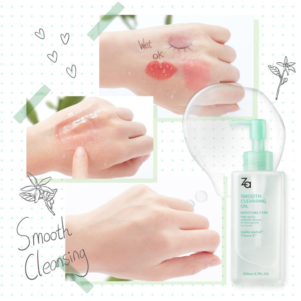 Za SMOOTH CLEANSING OIL ผลิตภัณฑ์ทำความสะอาดเมคอัพ ทำความสะอาดได้อย่างหมดจด พร้อมน้ำมันโจโจ้บาเข้มข้นและวิตามินอี เพื่อเพิ่มความกระจ่างใสและต่อต้านอนุมูลอิสระ นอกจากนี้ยังมีเทคโนโลยีพิเศษที่สามารถแก้ปัญหา Angle Plug และปัญหารูขุมขน ลดปัญหาสิวหัวดำได้อีกด้วย