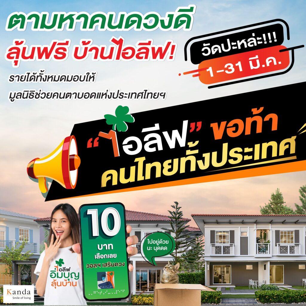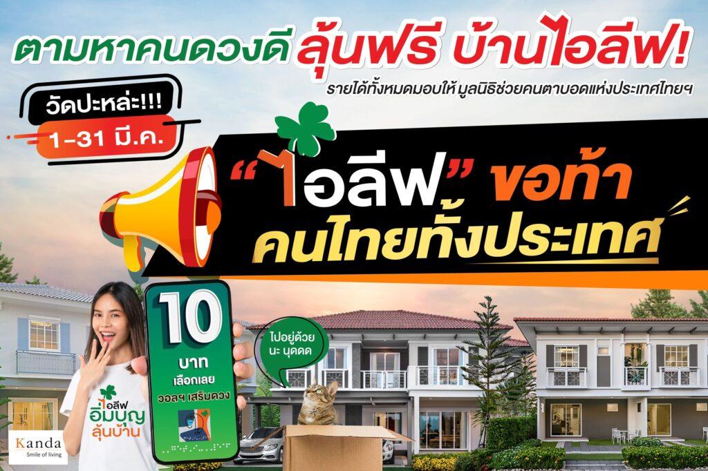 กานดา พร็อพเพอร์ตี้ จัดแคมเปญใหญ่ “ไอลีฟ อิ่มบุญ ลุ้นบ้าน” ชวนคนไทยร่วมแบ่งปันขั้นต่ำ 10 บาท เพื่อมูลนิธิช่วยคนตาบอดแห่งประเทศไทยในพระบรมราชินูปถัมภ์ มีสิทธิ์ลุ้นรับบ้านฟรีมูลค่ากว่า 2 ล้านบาท