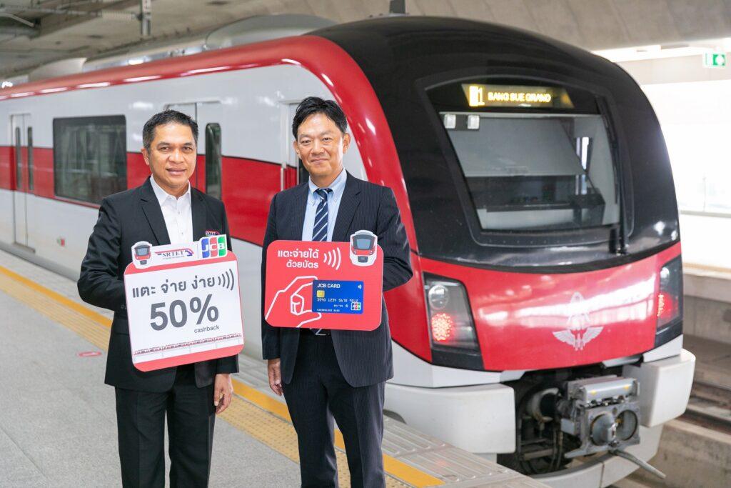 ผู้ถือบัตรเครดิตเจซีบีหรือบัตรเดบิตที่ออกในประเทศไทยและต่างประเทศ (ยกเว้นประเทศญี่ปุ่น ไต้หวัน มองโกเลีย เมียนมา และรัสเซีย) สามารถแตะบัตรฯ เพื่อชำระค่าโดยสารที่ประตูอัตโนมัติ ได้ที่สถานีรถไฟฟ้าสายสีแดง โดยจะได้รับเครดิตเงินคืน 50% สูงสุด 500 บาทต่อบัตรต่อเดือน ระหว่างวันที่ 1 มีนาคม 2566 – 31 พฤษภาคม 2566 จำกัดเครดิตเงินคืนมูลค่าสูงสุด 300,000 บาทตลอดระยะเวลาแคมเปญ