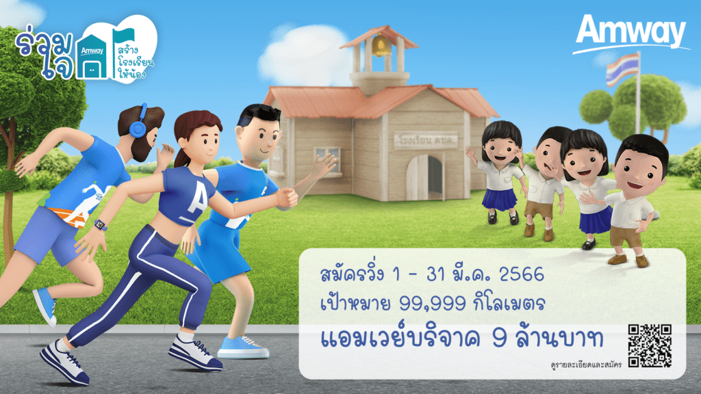แอมเวย์ประเทศไทยสานต่อการพัฒนาคุณภาพชีวิตของเด็กและเยาวชนจัดโครงการ “แอมเวย์ร่วมใจสร้างโรงเรียนให้น้อง” ผ่านกิจกรรมร่วมด้วยช่วย RUN ชวนผู้สนใจสมัครวิ่งแบบ Virtual Run สะสมระยะทางให้ได้ครบตามเป้าหมาย 99,999 กิโลเมตร แอมเวย์จะมอบเงินบริจาค 9 ล้านบาท เพื่อสร้างโรงเรียนตำรวจ ตระเวนชายแดน มอบโอกาสทางการศึกษาให้เด็กในพื้นที่ห่างไกลอันเป็นการสร้างอนาคตให้เด็กๆ เติบโตอย่างมีคุณภาพ