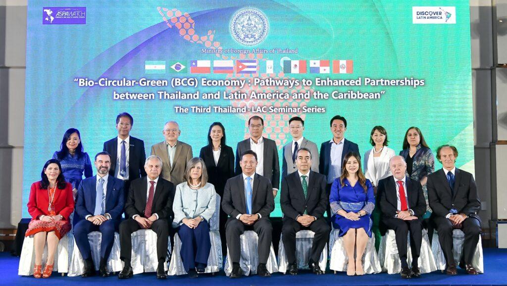 งานสัมมนาไทย-ลาตินอเมริกาและแคริบเบียน ครั้งที่ 3 จัดขึ้นโดยกระทรวงการต่างประเทศ กรมอเมริกาและแปซิฟิกใต้ ร่วมกับสถานเอกอัครราชทูตประเทศแถบลาตินอเมริกา 9 ประเทศ ได้แก่ อาร์เจนตินา บราซิล ชิลี โคลอมเบีย คิวบา กัวเตมาลา เม็กซิโก ปานามา และเปรู เพื่อร่วมหารือแนวทางความร่วมมือระหว่างประเทศไทยและประเทศในแถบลาตินอเมริกา รวมถึงแลกเปลี่ยนมุมมองนโยบายและมาตรการส่งเสริมการค้าการลงทุนด้านเศรษฐกิจ ซึ่งภูมิภาคลาตินอเมริกามีศักยภาพทางเศรษฐกิจสูง และมีนโยบายและแนวปฏิบัติที่ให้ความสำคัญกับสิ่งแวดล้อม สอดคล้องกับการพัฒนาเศรษฐกิจ BCG ของประเทศไทย