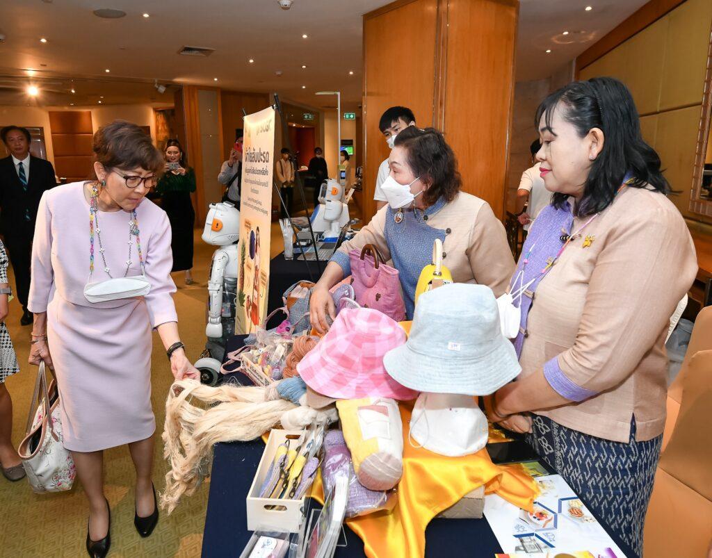 นอกจากนี้ SCGC ยังได้จัดบูทนิทรรศการแสดงนวัตกรรม SCGC GREEN POLYMER และสินค้าจากวิสาหกิจชุมชน จ.ระยอง ได้แก่ ผ้าใยสับปะรด ของวิสาหกิจชุมชนกลุ่มทอผ้าแสนใย คนแสนวิถี บ้านหมอมุ่ย อ.ปลวกแดง และผลิตภัณฑ์จากผึ้งชันโรง เช่น น้ำผึ้ง สบู่ น้ำมันหอมระเหย ของวิสาหกิจชุมชนกลุ่มส่งเสริมอาชีพผู้เลี้ยงชันโรงบ้านทับมา อ.เมือง ซึ่ง SCGC ได้ส่งเสริมและช่วยพัฒนาผลิตภัณฑ์ตามแนวทาง BCG เพื่อสร้างอาชีพและรายได้ให้กับชุมชน โดยได้รับเกียรติจาก นายดอน ปรมัตถ์วินัย           รองนายกรัฐมนตรีและรัฐมนตรีว่าการกระทรวงการต่างประเทศ และคณะติดตาม รวมถึงกลุ่มคณะทูตประเทศลาตินอเมริกาและแคริบเบียน เยี่ยมชมนิทรรศการ
