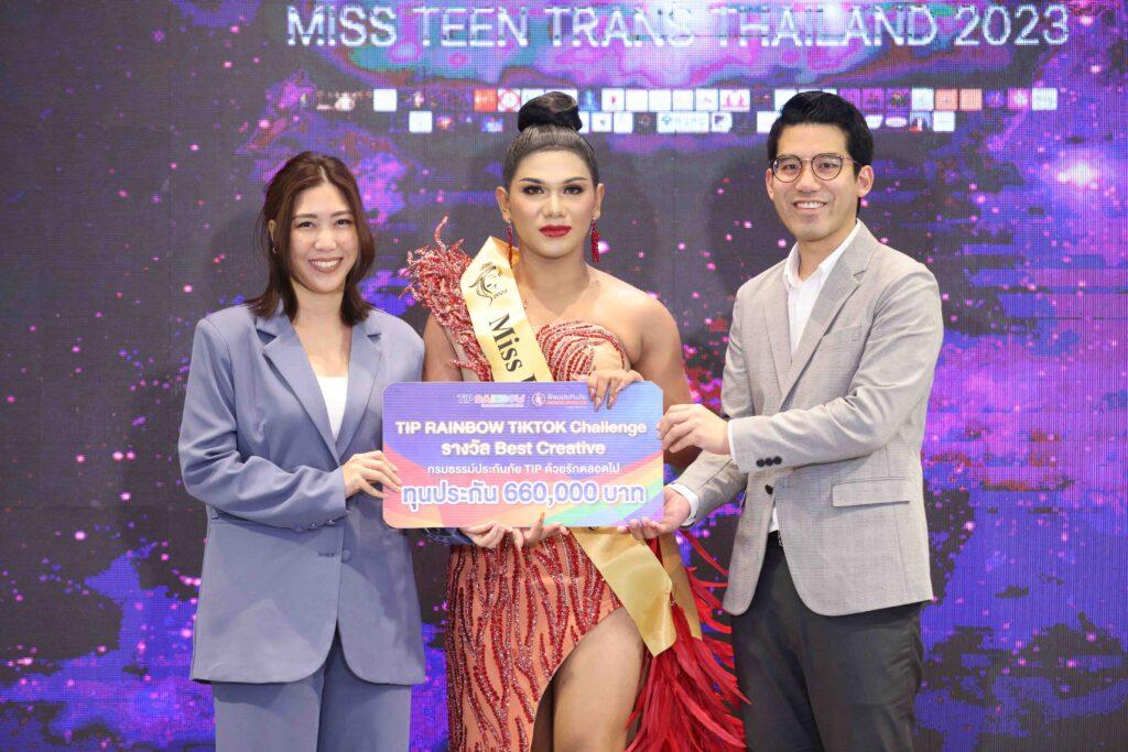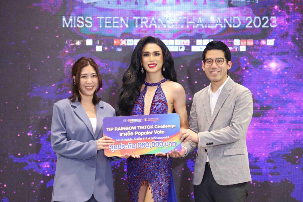 TIP Rainbow ประกันภัยที่เข้าใจความหลากหลาย โดย ทิพยประกันภัย ร่วมสนับสนุนการประกวด Miss Teen Trans Thailand ปีที่ 2  ซึ่งเวทีการประกวดนี้เป็นเวทีต้นแบบสำหรับเด็กและเยาวชนที่มีความหลากหลายทางเพศ หรือ LGBTQ+ ที่มีจิตอาสาและจิตสาธารณะ  อีกทั้งยังช่วยส่งเสริมภาพลักษณ์ของเยาวชนและเป็นการสนับสนุนการสร้างเวทีให้แสดงศักยภาพอย่างเต็มที่อีกด้วย  โดยบริษัทฯได้มอบแผนประกันภัย “TIP ด้วยรักตลอดไป” คุ้มครองอุบัติเหตุและภาวะโคม่าจากโรคร้ายแรง ให้กับผู้ได้รับตำแหน่ง Miss Teen Trans Thailand 2023 และมอบรางวัลพิเศษ TIP Rainbow TIKTOK Challenge รวม 3 รางวัล   ทุนประกันรวม 1,980,000 บาท  ณ คูณ โฮเทล สุขุมวิท