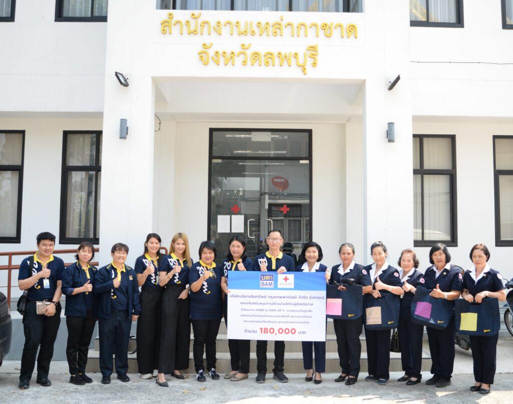 นายประสิทธิ์ เงินถาวรกุล ผู้อำนวยการฝ่ายพัฒนาสินทรัพย์ภาคกลาง นางกนกวรรณ คิวเจริญ ผู้จัดการสำนักงานสระบุรี และนางสาวอรพรรณ พรหมเดช ผู้จัดการสำนักงานสุพรรณบุรี พร้อมด้วยพนักงาน บริษัทบริหารสินทรัพย์ กรุงเทพพาณิชย์ จำกัด (มหาชน) หรือ BAM มอบเงินสนับสนุนการก่อสร้างบ้านให้กับผู้ด้อยโอกาส ในพื้นที่ตำบลมหาโพธิ อำเภอสระโบสถ์ จังหวัดลพบุรี จำนวน 180,000 บาท โดยมี นางสุวจี ศิริปัญโญ นายกเหล่ากาชาดจังหวัดลพบุรี และคณะกรรมการเหล่ากาชาดจังหวัดลพบุรี พร้อมเจ้าหน้าที่องค์กรปกครองส่วนท้องถิ่น เป็นผู้แทนรับมอบเงิน