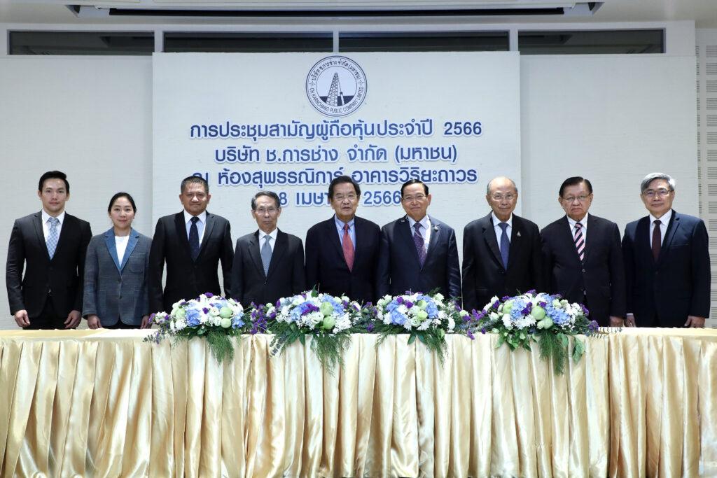 บริษัท ช.การช่าง จำกัด (มหาชน) จัดประชุมสามัญผู้ถือหุ้นประจำปี 2566 นำโดย นายอัศวิน คงสิริ ประธานกรรมการบริษัท (ท่านที่ 5 จากซ้าย) เป็นประธานในการประชุม ร่วมกับ นายปลิว ตรีวิศวเวทย์ ประธานกรรมการบริหาร (ท่านที่ 6 จากซ้าย) พร้อมคณะกรรมการบริษัทและผู้บริหาร บริษัท ช.การช่าง จำกัด (มหาชน) ร่วมชี้แจงต่อที่ประชุมผู้ถือหุ้น ณ ห้องสุพรรณิการ์ อาคารวิริยะถาวร เมื่อเร็วๆ นี้