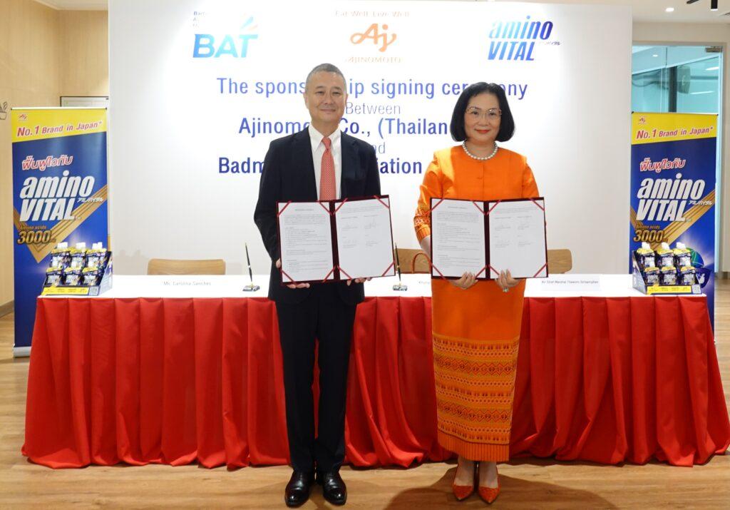 เมื่อเร็วๆ นี้ มร.อิชิโระ ซะกะกุระ กรรมการผู้จัดการใหญ่ บริษัท อายิโนะโมะโต๊ะ (ประเทศไทย) จำกัด ร่วมกับ คุณหญิงปัทมา ลีสวัสดิ์ตระกูล กรรมการคณะกรรมการโอลิมปิกสากล (ไอโอซีเมมเบอร์) รองประธานสหพันธ์แบดมินตันโลก และ นายกสมาคมกีฬาแบดมินตันแห่งประเทศไทย ในพระบรมราชูปถัมภ์ ร่วมลงนามสัญญาการให้การสนับสนุนสมาคมกีฬาแบดมินตันแห่งประเทศไทยฯ ประจำปี 2566 ภายใต้โครงการ “Thailand Victory Project” โดยมีวัตถุประสงค์หลักเพื่อส่งเสริมให้นักกีฬาแบดมินตันทีมชาติไทย ได้รับประทานอาหารที่ถูกต้องเหมาะสมตามหลักโภชนาการ เพื่อเสริมสร้างร่างกายให้แข็งแรงและได้รับพลังงานที่เพียงพอ ผ่านโปรแกรมโภชนาการอาหาร คาจิเมชิ หรือ ที่เรียกว่า มื้ออาหารแห่งชัยชนะ (Winning Meal) นอกจากนี้ ยังได้ส่งมอบผลิตภัณฑ์ “อะมิโน ไวทัล®” และสนับสนุน ควบคู่ไปกับการให้ความรู้ด้านโภชนาการและการประยุกต์ใช้พลังของกรดอะมิโน เพื่อส่งเสริมการพัฒนาศักยภาพระดับสูงสุดให้กับทัพนักกีฬาในช่วงเตรียมพร้อมร่างกายและฝึกซ้อม รวมถึงในระหว่างการแข่งขัน