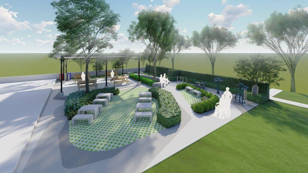 2.สวนหย่อม ข้างศูนย์บริการสาธารณสุข 8 ขนาด 92 ตารางวา พัฒนาสู่การเป็นต้นแบบของสวนเพื่อสุขภาพสำหรับทุกคน จุดเด่นเรื่องพื้นที่สาธารณะสีเขียว กับ สถานพยาบาล “สวนเพื่อสุขภาพ” มีมุมออกกำลังกายเบาๆ สำหรับผู้สูงอายุให้สามารถมาทำกิจกรรมได้ รวมถึงมีมุมพืชสมุนไพร สนับสนุนการสร้างสุขภาพที่ดี เพิ่มที่นั่งตามมุมต้นไม้ต่างๆ แก้ pain point จากการมีที่นั่งรอรับบริการไม่เพียงพอ เป็นพื้นที่ทำกิจกรรมของทุกคน เด็ก ผู้สูงอายุ คนพิการ ตามแนวคิด universal design มีการนำวัสดุรีไซเคิลมาใช้ แสดงถึงความเป็นมิตรกับสิ่งแวดล้อม จะเริ่มต้นดำเนินการตั้งแต่เดือนกรกฎาคม
