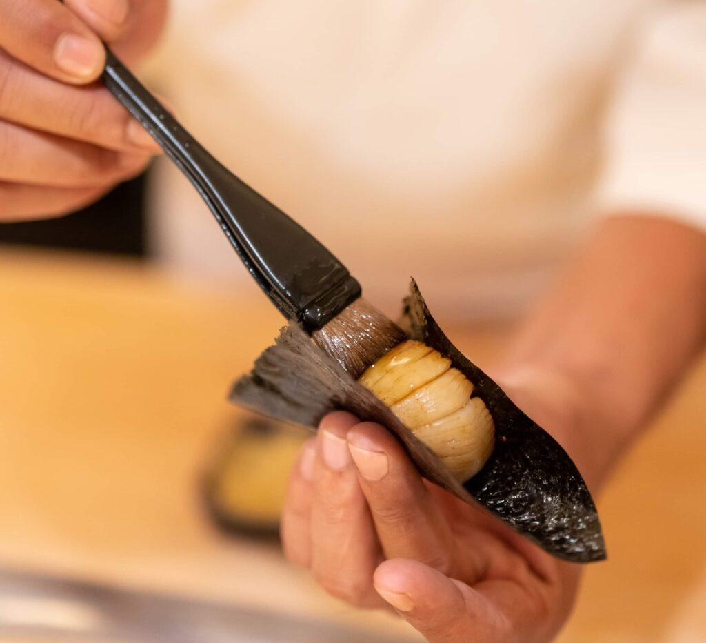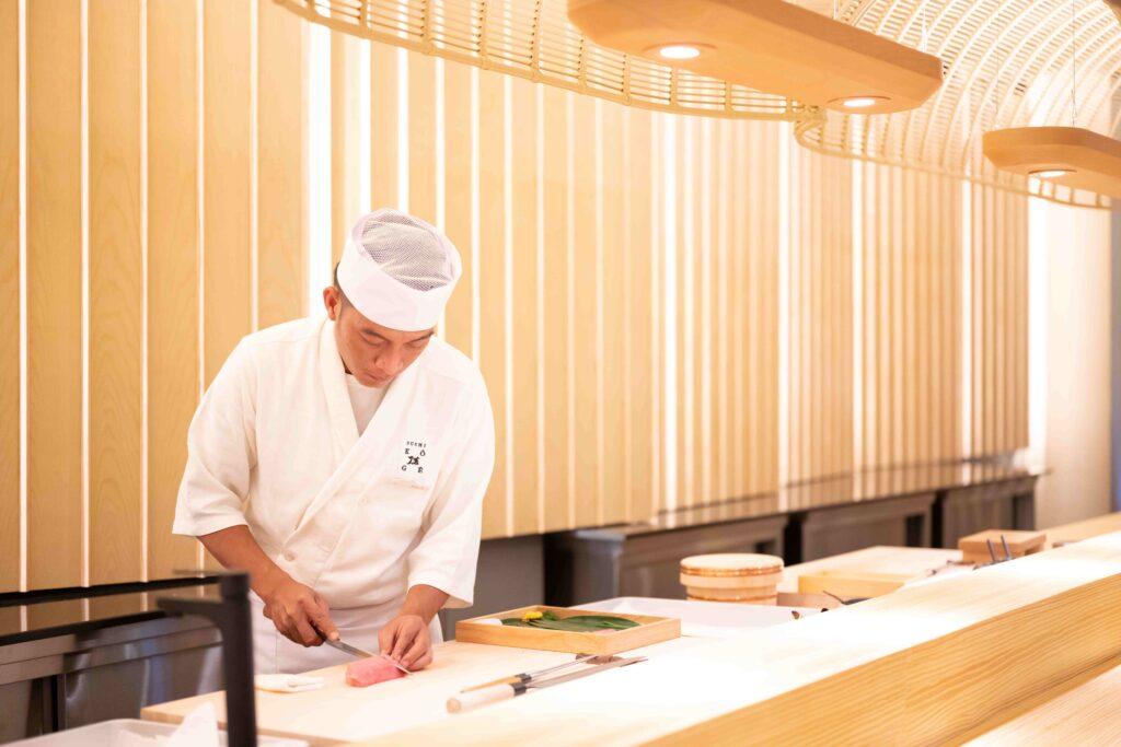 “ด้วยความที่อยู่ในธุรกิจอาหารมาร่วม 10 ปี ทำให้เรามีคอนเน็กชั่น สามารถเข้าถึงวัตถุดิบ ชั้นยอดของญี่ปุ่น สามารถคัดสรรจากแหล่งที่ดีที่สุดในแต่ละฤดูกาล หรืออย่างข้าวที่ใช้ เราก็คัดเลือกอย่างดีจนได้ข้าวที่เหมาะสม จากแหล่งปลูกข้าวที่ดีที่สุดของญี่ปุ่น นำมาหุงด้วยน้ำแร่ เพื่อให้ข้าวทุกคำเป็นคำพิเศษ มีรสชาติที่ละเมียดละไม ในส่วนของการออกแบบคอร์สเมนู ที่เราจัดเต็ม ให้ถึง 18 คอร์ส เรามีการทำการบ้านอย่างหนัก ทั้งตระเวนชิมร้านโอมากาเสะดังๆ ทั่วญี่ปุ่น โดยเฉพาะ โอซาก้าและโตเกียว และยังพัฒนาเมนูร่วมกับเชฟของร้าน ซึ่งเป็นเชฟคนไทย ที่มีประสบการณ์ ทำงาน มากว่า 15 ปี รวมถึงเคยเป็นเชฟที่โตเกียว และเคยทำงานในร้านอาหารชื่อดังอย่างร้าน Morimoto นอกจากนี้ยังผ่านการฝึกอบรมจากวิทยาลัยด้านอาหารญี่ปุ่น วาโชกุ โตเกียว คอลเลจ มาร่วมสร้างสรรค์ เมนู และรังสรรค์อาหารในทุกคำให้รสชาติแบบต้นตำรับของญุี่ปุ่น