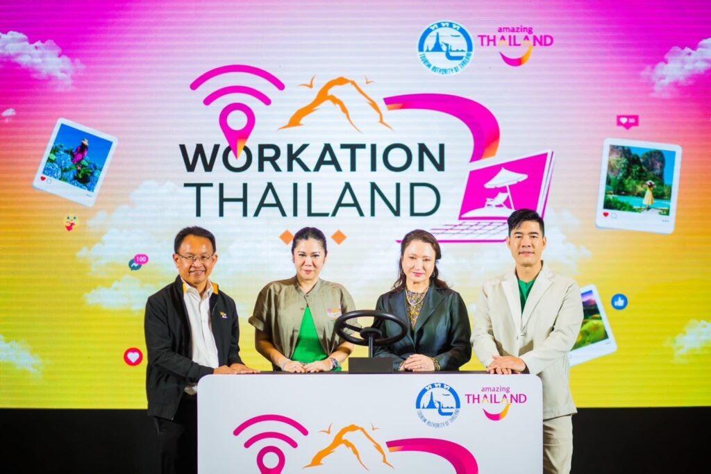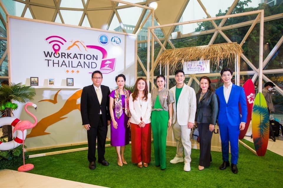 นางสาวฐาปนีย์ เกียรติไพบูลย์ รองผู้ว่าการด้านตลาดในประเทศ การท่องเที่ยวแห่งประเทศไทย (ททท.) พร้อมด้วย นายสุชีพ มีถม ผู้ช่วยผู้ว่าการผลิต ไฟฟ้าพลังงานหมุนเวียน การไฟฟ้าฝ่ายผลิตแห่งประเทศไทย (กฟผ.) นางมาริสา สุโกศล หนุนภักดี นายกสมาคม โรงแรมไทย และนายวู้ดดี้ วุฒิธร มิลินทจินดา พิธีกรชื่อดัง งานแถลงข่าวเปิดตัวแคมเปญ “Workation Thailand 100 เดียวเที่ยวได้งาน” ขานรับนโยบายส่งเสริมการทํางานนอกสถานที่ของภาครัฐ เพื่อส่งเสริมการตลาดและกระตุ้นให้เกิดการเดินทางภายในประเทศและพักค้างคืนในวันธรรมดา โดยนําเสนอสินค้าและบริการด้านการท่องเท่ียวในราคาเพียง 100 บาท ผ่านเว็บไซต์ workationthailand.com เจาะกลุ่มนักท่องเที่ยว Digital Nomad และ Remote Worker ณ โดม Gallery อาคารเพิร์ล แบงก์ค็อก กรุงเทพมหานคร
