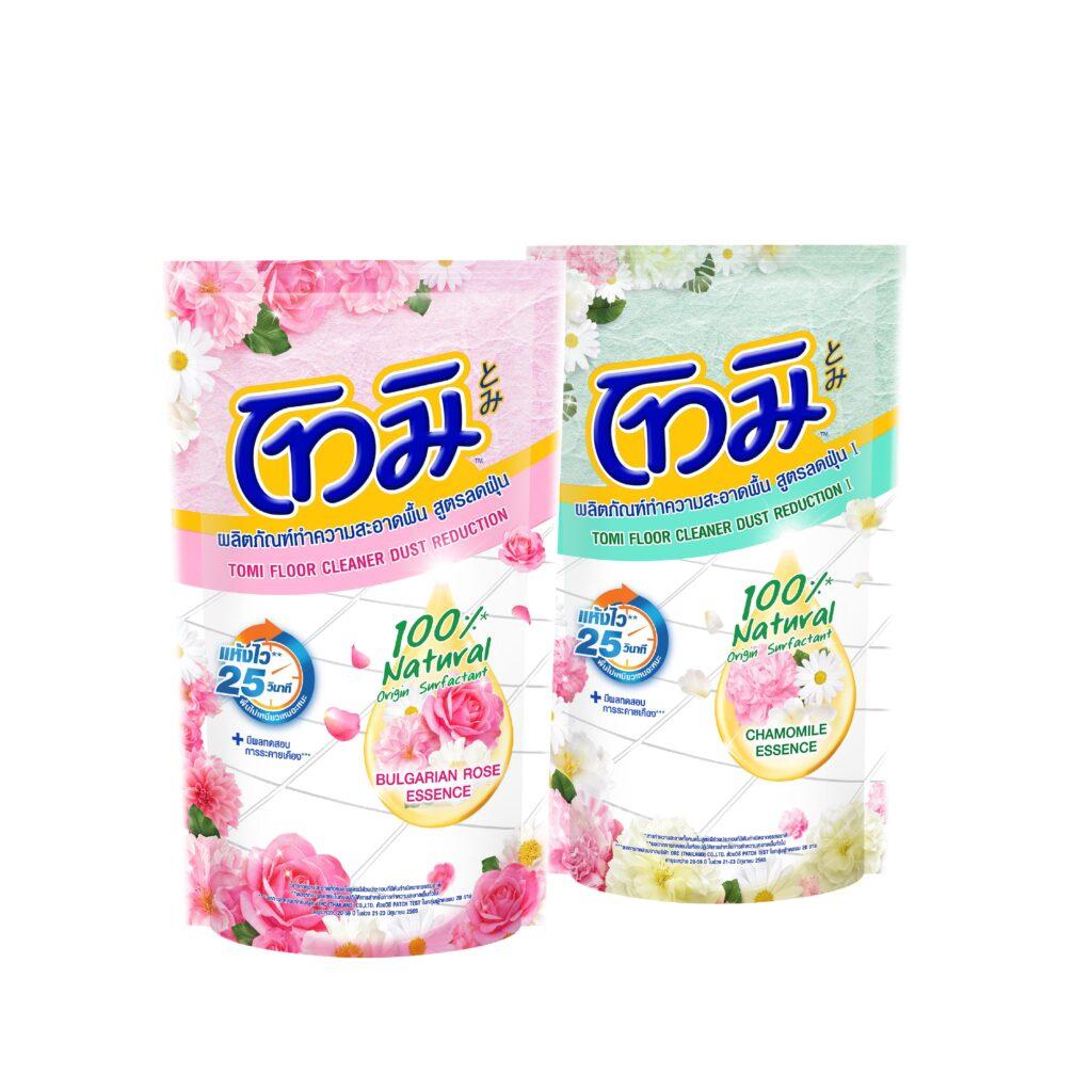 โทมิ ผลิตภัณฑ์ทำความสะอาดพื้น เนเชอรัล เอสเซนส์ สูตรลดฝุ่น เพิ่มความมั่นใจให้พื้นบ้านสะอาด ปราศจากฝุ่นจิ๋ว พร้อมช่วยขจัดคราบเหนียว และรอยเปื้อนได้อย่างหมดจด ด้วย 100% Natural Origin Surfactant มอบพื้นสะอาด แห้งไวภายใน 25 วินาที ไม่เหนียวเหนอะหนะ ไม่ทิ้งคราบขาว ปราศจากสาร SLS และ SLES มีผลทดสอบการระคายเคือง ใช้ได้กับพื้นผิวทั่วไป ไม่ทำลายพื้นผิว พร้อมสร้างบรรยากาศรื่นรมย์ให้ทุกคนในครอบครัว ด้วยกลิ่นหอมละมุนจากสารสกัด Essential Oil จากดอกไม้ธรรมชาติ มีให้เลือก 2 กลิ่นหอม ได้แก่ บัลแกเรีย โรส (สีชมพู) และคาโมมายล์ (สีเขียว) ขนาด 650 มล. ราคา 65 บาท