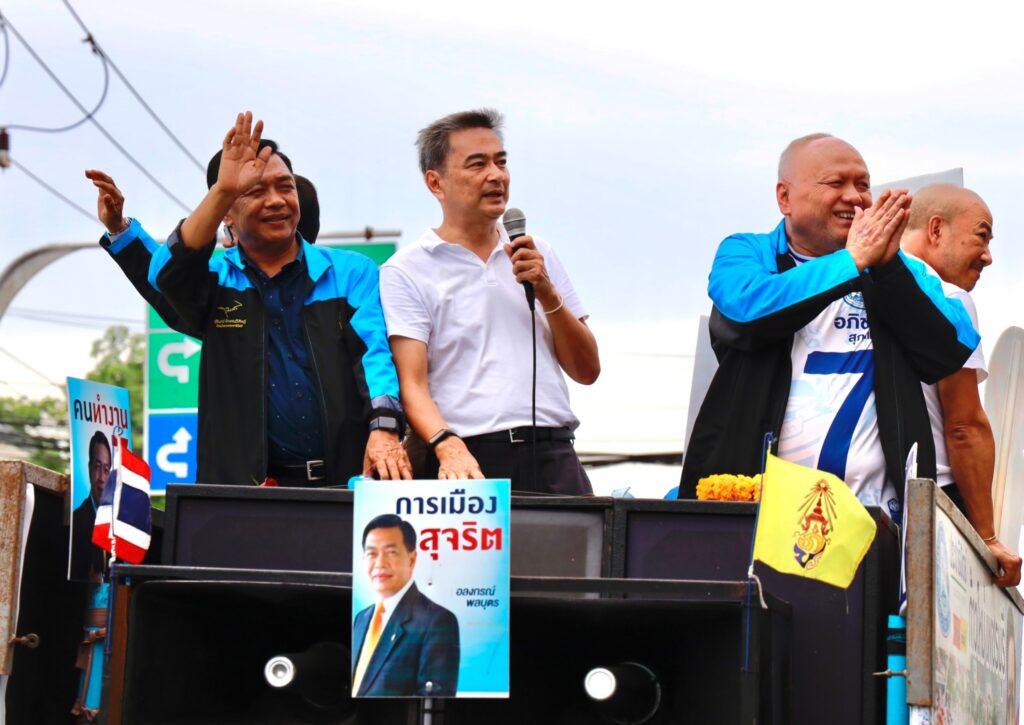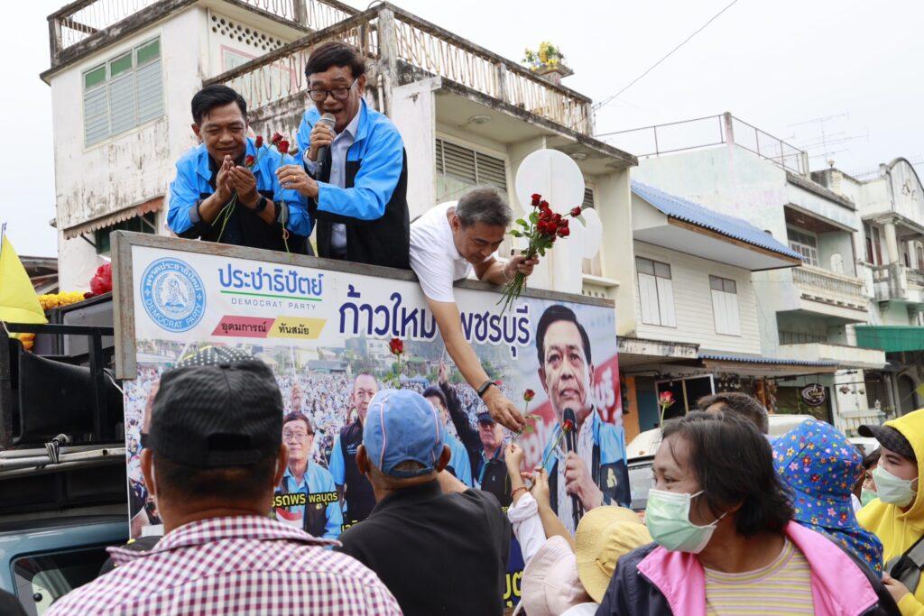 วันนี้ นายอภิสิทธิ์ เวชชาชีวะ อดีตหัวหน้าพรรคประชาธิปัตย์และอดีตนายกรัฐมนตรี นายพนิช วิกิตเศรษฐ์ อดีตรองผู้ว่ากทม. และนายอรรถพร พลบุตร ผู้สมัคร ส.ส.แบบบัญชีรายชื่อ พรรคประชาธิปัตย์ เบอร์26ได้เดินทางลงพื้นที่อำเภอชะอำ อำเภอท่ายาง อำเภอเมืองและอำเภอบ้านแหลมในจังหวัดเพชรบุรี เพื่อหาเสียงช่วยผู้สมัครของพรรคประชาธิปัตย์ ได้แก่นายอลงกรณ์ พลบุตร อดีตรัฐมนตรีและอดีต ส.ส.หมายเลข 7 เขต 1 นายกัมพล สุภาแพ่ง อดีต ส.ส.เขต 2 หมายเลข 7 และนายอภิชาติ สุภาแพ่ง อดีต ส.ส.เขต 3 หมายเลข 7 มีประชาชนโบกมือต้อนรับและมอบพวงมาลัยดอกไม้ให้กำลังใจตลอดเส้นทางโดยนายอภิสิทธิ ได้กล่าวปราศรัยกับประชาชนที่ตลาดเทศบาลเมืองเพชรบุรีว่า เจอกับอลงกรณ์ พลบุตร ตั้งแต่ปี พ.ศ.2535 ในฐานะผู้สมัครหน้าใหม่ของพรรคประชาธิปัตย์ด้วยกัน เราทำงานมาด้วยกัน เชื่อมั่นว่า อลงกรณ์เป็นคนมีผลงาน มีอุดมการณ์ และฝากฝีมือการทำงานไว้คนเพชรบุรีคงจำกันได้ดี เช่นเดียวกับอดีต ส.ส.อภิชาติ อดีต ส.ส.กัมพลและอดีต ส.ส.อรรถพร คราวนี้ตนลงพื้นที่ทั่วประเทศ หนักมาก ต้องต่อสู้ทุกรูปแบบ เรายึดมั่นอุดมการณ์ประชาธิปไตยสุจริต ขอพี่น้องช่วยกันสนับสนุน อลงกรณ์และผู้สมัครประชาธิปัตย์เพชรบุรีทัึ้งสามเขต หมายเลข 7 และพรรคประชาธิปัตย์ หมายเลข 26 .