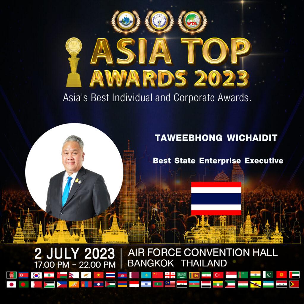 นายทวีพงษ์ วิชัยดิษฐ ผู้ว่าการการเคหะแห่งชาติ ร่วมรับรางวัลเกียรติยศ สุดยอดบุคคลและองค์กรในระดับเอเชีย “Asia Top Awards 2023 สาขา Best State Enterprise Executive” รางวัลผู้บริหารงานรัฐวิสาหกิจยอดเยี่ยม จาก พลตำรวจตรี วิชัย สังข์ประไพ ที่ปรึกษารัฐมนตรีว่าการกระทรวงพาณิชย์ เมื่อวันที่ 2 กรกฎาคม 2566 ณ ห้องประชุมชัยพฤกษ์ หอประชุมกองทัพกองอากาศ การมอบรางวัลดังกล่าวจัดขึ้นโดยชมรมพัฒนาธุรกิจและทรัพยากรมนุษย์ร่วมกับสภาสหพันธ์รักษาสันติภาพ (UNPKFC) และสมาคมการค้านักธุรกิจสากล (WTA) เพื่อเชิดชูบุคคลอันทรงเกียรติที่ได้รับรางวัลอันทรงคุณค่าแห่งเอเชีย มีความมุ่งมั่น ตั้งใจ และมองเห็นถึงศักยภาพ