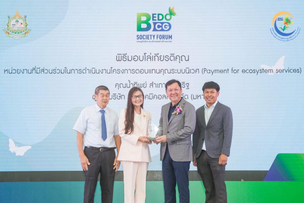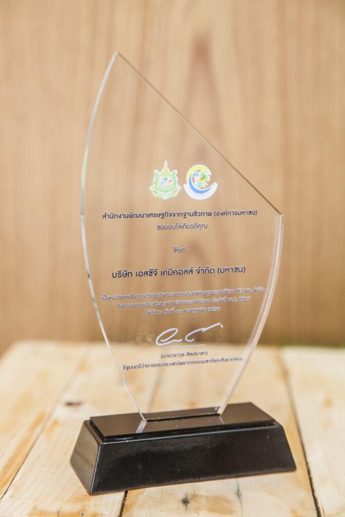 เอสซีจี เคมิคอลส์ หรือ SCGC ธุรกิจเคมีภัณฑ์ครบวงจรเพื่อความยั่งยืน (Chemicals Business for Sustainability) ดำเนินธุรกิจตามแนวทาง ESG (Environmental, Social and Governance) ได้รับโล่เกียรติคุณจากสำนักงานพัฒนาเศรษฐกิจจากฐานชีวภาพ (องค์กรมหาชน) หรือBEDO (Biodiversity-Based Economy Development Office : BEDO) กระทรวงทรัพยากรธรรมชาติและสิ่งแวดล้อม จากการนำแนวคิดการจ่ายค่าตอบแทนในการบริการของระบบนิเวศ (Payment for Ecosystem Services: PES) ซึ่งเป็นหนึ่งในการประเมินคุณค่าความหลากหลายทางชีวภาพ โดยได้ประยุกต์ใช้กับโครงการฟื้นฟูป่าต้นน้ำ เขายายดา จ.ระยอง เพื่อให้เห็นคุณค่าและประโยชน์ที่ได้รับจากระบบนิเวศอย่างยั่งยืน โดยมี นายจตุพร บุรุษพัฒน์ ปลัดกระทรวงทรัพยากรธรรมชาติและสิ่งแวดล้อม เป็นผู้มอบฯ ภายในงาน “มหกรรมทรัพยากรชีวภาพและการสร้างโอกาสทางการตลาด”