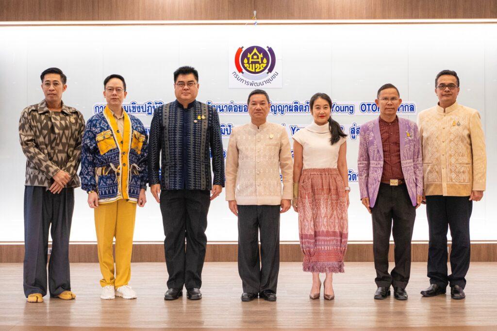 นางสาวณัฐนิช อินทสระ ผู้อำนวยการสำนักส่งเสริมภูมิปัญญาท้องถิ่นและวิสาหกิจชุมชน กล่าวเพิ่มเติมว่า กรมการพัฒนาชุมชน จัดดำเนินกิจกรรมการอบรมเชิงปฏิบัติการด้านการพัฒนาต่อยอดภูมิปัญญาผลิตภัณฑ์Young OTOP สู่สากล โดยให้ความสำคัญในการส่งเสริมและพัฒนาเยาวชนเพื่ออนุรักษ์และสืบสานภูมิปัญญาท้องถิ่น มุ่งเน้นให้เยาวชนมีบทบาท และมีส่วนร่วมในการถ่ายทอดภูมิปัญญาท้องถิ่น โดยดำเนินการเพิ่มทักษะการเรียนรู้และเสริมสร้างประสบการณ์ให้กับเยาวชน ร่วมกันอนุรักษ์ และสืบสานภูมิปัญญา ทำให้เกิดการตระหนักถึงความสำคัญของภูมิปัญญาท้องถิ่นที่จะต้องอนุรักษ์ไว้ รวมทั้งมีองค์ความรู้ในการประกอบอาชีพ สามารถสร้างรายได้ให้กับตนเองครอบครัว โดยกรมการพัฒนาชุมชน ได้จัดทำโครงการพัฒนาต่อยอดภูมิปัญญาผลิตภัณฑ์ Young OTOP สู่สากล โดยมีวัตถุประสงค์เพื่อพัฒนาทักษะองค์ความรู้ให้ผู้ประกอบการรุ่นใหม่ (Young OTOP) ได้พัฒนาผลิตภัณฑ์ ให้ตอบสนองต่อความต้องการของตลาด ต่อยอด ภูมิปัญญา ยกระดับการพัฒนาและเพิ่มมูลค่าผลิตภัณฑ์ OTOP ให้มีคุณภาพมาตรฐาน มีอัตลักษณ์เฉพาะ สร้างสรรค์และทันสมัย สามารถแข่งขันในตลาดสากล รวมถึงการเพิ่มช่องทางการตลาดผลิตภัณฑ์ Young OTOP ให้มากยิ่งขึ้น โดยมีกลุ่มเป้าหมายที่เข้าร่วมโครงการในครั้งนี้ ผ่านการคัดเลือกเป็นเยาวชน Young OTOP ประเภทผ้าและเครื่องแต่งกาย และประเภทของใช้ของตกแต่ง ของที่ระลึก ที่ผ่านการคัดเลือก รวมทั้งสิ้น 111 ราย จาก 49 จังหวัด ได้แก่ ภาคเหนือ จำนวน 10 จังหวัด 27 ราย ภาคตะวันออกเฉียงเหนือ จำนวน 16 จังหวัด 39 ราย ภาคกลาง จำนวน 14 จังหวัด 25 ราย และภาคใต้ จำนวน 9 จังหวัด 20 ราย กิจกรรมที่ดำเนินการตามโครงการฯ ประกอบด้วย 3 กิจกรรม ดังนี้