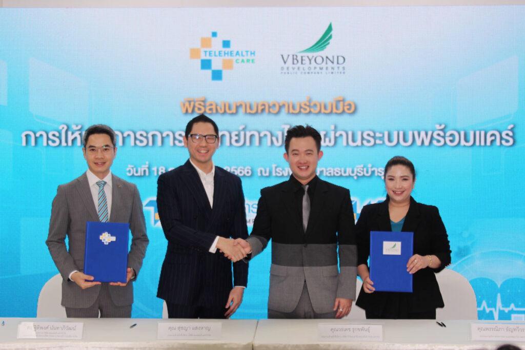 คุณวรเดช รุกขพันธุ์ ประธานเจ้าหน้าที่บริหาร บริษัท วี บียอนด์ ดีเวลอปเม้นท์ จำกัด (มหาชน) บริษัทนายหน้าอสังหาริมทรัพย์ชั้นนำ เข้าร่วมงานแถลงข่าวพิธีลงนามบันทึกข้อตกลงความร่วมมือทางธุรกิจกับ บริษัท เทเลเฮลท์ แคร์ จำกัด ในเครือ บริษัท ธนบุรี เฮลท์แคร์ กรุ๊ป จำกัด (มหาชน) หรือ THG เพื่อนำเทคโนโลยี Health tech จาก THG มาพัฒนาการให้บริการด้านการแพทย์ออนไลน์ในรูปแบบ Health Friendly Living ร่วมกับแพลตฟอร์ม AI อัจฉริยะ Property mall จากวีบียอนด์ เพื่อขยายการบริการลูกค้าอสังหาฯ ตอบโจทย์ไลฟ์สไตล์ชีวิตยุค Digital