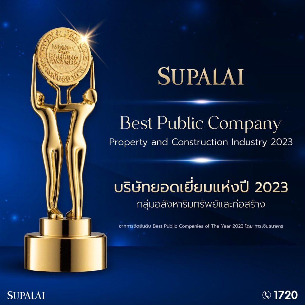 บริษัท ศุภาลัย จำกัด (มหาชน) คว้ารางวัลเกียรติยศ บริษัทยอดเยี่ยมแห่งปี 2566 กลุ่มอสังหาริมทรัพย์และก่อสร้าง Best Public Company – Property and Construction Industry 2023 จากการจัดอันดับ Best Public Companies of The Year 2023 โดย การเงินธนาคาร คุณไตรเตชะ ตั้งมติธรรม กรรมการผู้จัดการ และ คุณศิริพร วังศพ่าห์ ผู้ช่วยกรรมการผู้จัดการ สายงานบัญชีและการเงิน รับมอบรางวัลอันทรงเกียรติดังกล่าว ที่มีผลการจัดอันดับเป็นที่ 1 ในกลุ่มอุตสาหกรรมอสังหาริมทรัพย์และก่อสร้างเป็นรางวัลที่มีการวิเคราะห์พื้นฐานทางธุรกิจของบริษัทจดทะเบียนในตลาดหลักทรัพย์แห่งประเทศไทย ที่มีมูลค่าตลาดหลักทรัพย์สูงสุด 300 อันดับแรก และมีผลประกอบการรวมยอดเยี่ยมในรอบปี 2565 ที่ผ่านมา