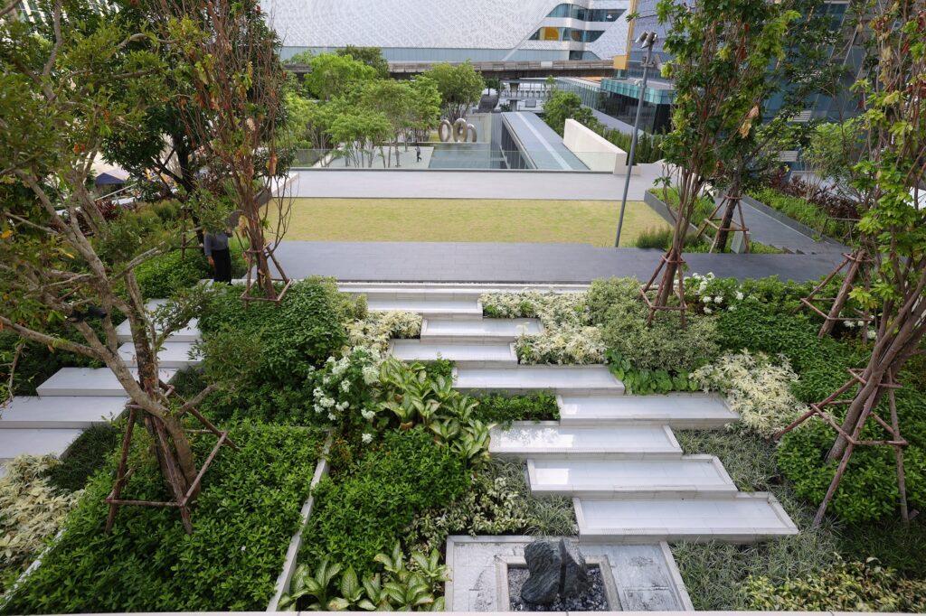 โดย OCC เป็นสถาปัตยกรรมที่ผสมผสานระหว่างความเป็นสากลและศิลปวัฒนธรรมไทยเข้าด้วยกัน ทั้งยังเกิดประโยชน์ในแง่การใช้งานอย่างเป็นรูปธรรม เห็นได้จากแผงแนวเฉียงที่พาดอยู่บนส่วนหน้าของอาคาร (façade) ทำหน้าที่ลดความร้อนจากแสงอาทิตย์ที่เข้าสู่อาคาร นอกจากนั้น ยังเป็นอาคารสำนักงานไม่กี่แห่งในประเทศที่มีพื้นที่สีเขียวบนตัวอาคาร และยังเปิดพื้นที่สีเขียวกว่า 3 ไร่ด้านหน้าโครงการให้คนทั่วไปเข้ามาพักผ่อนได้ตามอัธยาศัย ตามความตั้งใจของเราที่อยากนำผืนป่ากลับคืนสู่เมือง เพิ่มโอกาสให้ผู้คนได้ใกล้ชิดกับสิ่งแวดล้อมมากขึ้น โดยพื้นที่หน้าโครงการ OCC ถูกออกแบบให้เปิดโล่ง ด้วย Urban Stage เป็นบันไดทางเดินสีเขียวชอุ่มเข้ามายังด้านในโครงการ เพื่อให้พื้นที่หน้าอาคารเต็มไปด้วยความร่มรื่นจากต้นไม้ฤดูกาล (Seasonal Tree) อย่างต้นกัลปพฤกษ์ ไม้มงคลที่ในช่วงเดือนกุมภาพันธ์ถึงเมษายน ใบไม้เขียวจะทยอยเปลี่ยนเป็นสีชมพู เพิ่มความร่มรื่นและสร้างบรรยากาศน่าพักผ่อนให้พื้นที่ยิ่งขึ้น