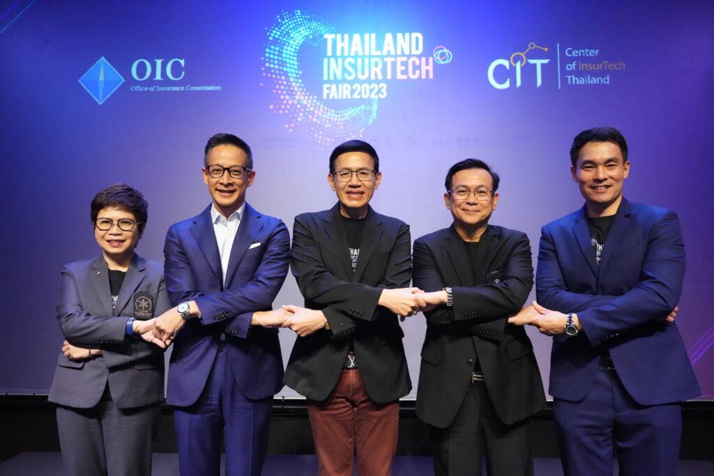 สำหรับการจัดงาน Thailand Insurtech Fair 2023 ในครั้งนี้ เกิดขึ้นจากความตั้งใจของสำนักงาน คปภ. และศูนย์ CIT ร่วมกับภาคอุตสาหกรรมประกันภัย เพื่อเสริมสร้างความแข็งแกร่งและขับเคลื่อนระบบประกันภัยไทยให้เติบโตอย่างยั่งยืน ภายใต้แนวคิดใหม่ InsurTech for Sustainability ซึ่งก่อนหน้านี้ ได้มีการดำเนินมาตรการต่างๆ เพื่อกระตุ้นการใช้เทคโนโลยีและนวัตกรรมในธุรกิจประกันภัย เช่น การออกกรมธรรม์ประกันภัยในรูปแบบอิเล็กทรอนิกส์ หรือ e-Policy เพื่อลดการใช้กระดาษ การนำ AI มาใช้ในการจัดการสินไหมทดแทน รวมถึงการส่งเสริมให้บริษัทประกันภัยมีพัฒนาการทางด้านความยั่งยืนตามหลัก ESG อย่างต่อเนื่อง ซึ่งปีนี้ได้ต่อยอดความสำเร็จจากปีที่ผ่านมา โดยในปีนี้แค่เริ่มต้นไตรมาสแรกของปี 2566 ธุรกิจประกันภัยเติบโตสูงถึงร้อยละ 4.81 ซึ่งสูงกว่าที่คาดการณ์ไว้มากทีเดียว แสดงให้เห็นถึงความตื่นตัวและความเข้าใจเรื่องการบริหารจัดการความเสี่ยงในชีวิตและทรัพย์สินของประชาชนมากขึ้น นอกจากนี้อีกเทรนด์หนึ่งที่น่าสนใจ คือ การที่บริษัทประกันภัยและ InsurTech มีการจับมือร่วมกัน พร้อมทั้งให้ความช่วยเหลือและสนับสนุน TechStartup รายใหม่ที่เข้ามาในตลาดประกันภัย ทำให้ได้นวัตกรรมใหม่ๆ อาทิ Digital Platform, E-commerce Application, Database เชิงลึก ฯลฯ ทำให้ทราบถึงพฤติกรรมในการจับจ่ายใช้สอยของผู้บริโภค ทำให้สามารถออกแบบผลิตภัณฑ์ประกันภัยและวิธีการสื่อสารที่ตรงกับความต้องการของผู้บริโภคได้