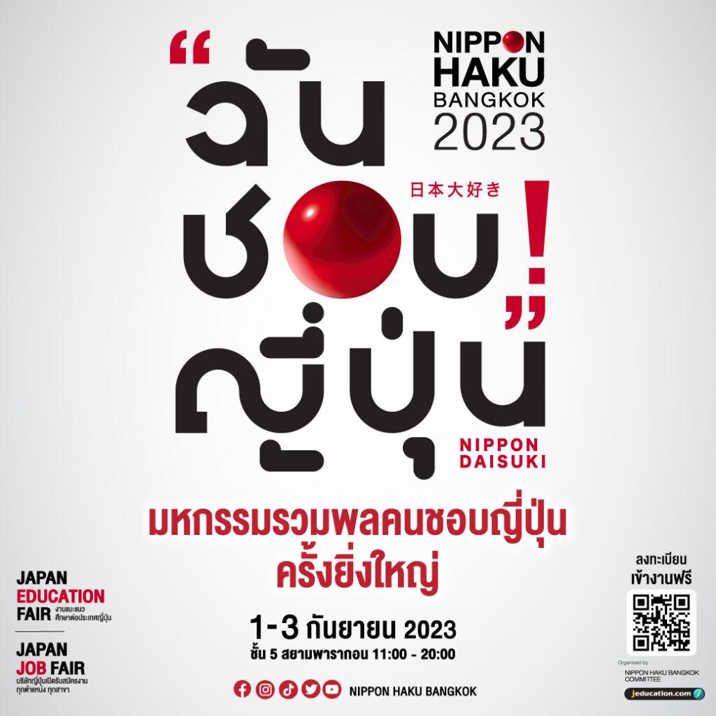 เจเอ็ดดูเคชั่น สถาบันสอนภาษาและศูนย์แนะแนวศึกษาต่อประเทศญี่ปุ่น เตรียมจัดงานมหกรรมเพื่อคนรักญี่ปุ่นแบบครบทุกเรื่องครั้งใหญ่ที่สุดในประเทศไทย กับงาน “NIPPON HAKU BANGKOK 2023” ในธีม “NIPPON DAISUKI!” #ตะโกนออกมาว่าฉันชอบญี่ปุ่น เตรียมมาปล่อยใจจอยๆ กับทุกเรื่องของความเป็นญี่ปุ่นที่รวบตึงแบบครบทุกมิติมาไว้ในงานเดียว พร้อมให้คนรักญี่ปุ่นได้อินกันจนฟินกับทุกกิจกรรมและความบันเทิงภายในงาน และสัมผัสกับความเป็นญี่ปุ่นอย่างแท้จริง ระหว่างวันที่ 1 – 3 กันยายน 2566 ณ ชั้น 5 สยามพารากอน