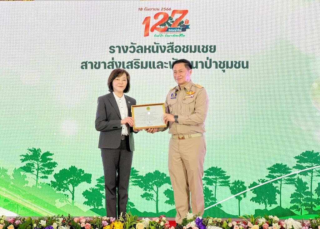 นางวิภาศิริ แสงวัชระกุล ผู้ช่วยประธานเจ้าหน้าที่บริหาร บริษัทบริหารสินทรัพย์ กรุงเทพพาณิชย์ จำกัด (มหาชน) หรือ BAM เข้าร่วมพิธีวันสถาปนากรมป่าไม้ ครบรอบ 127 ปี พร้อมรับรางวัลหนังสือชมเชย ผู้ช่วยเหลือราชการกรมป่าไม้ สาขาส่งเสริมและพัฒนาป่าชุมชน ในการเป็นผู้สนับสนุนภารกิจงานด้านป่าชุมชนของกรมป่าไม้ จากนายพิชิต สมบัติมาก รองปลัดกระทรวงทรัพยากรธรรมชาติและสิ่งแวดล้อม เมื่อวันที่ 18 กันยายน 2566 ณ ห้องประชุม 1 อาคารเทียมคมกฤส กรมป่าไม้