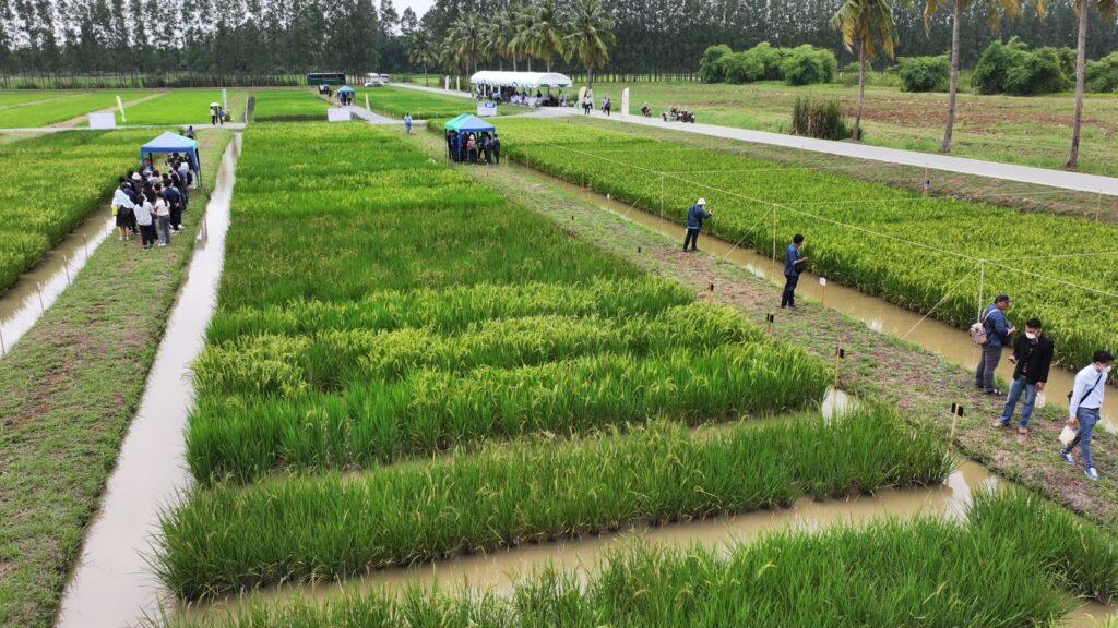เมื่อเร็ว ๆ นี้ (18 ก.ย. 66) ณ มหาวิทยาลัยเกษตรศาสตร์ วิทยาเขตกำแพงแสน จ.นครปฐม – ศูนย์พันธุวิศวกรรมและเทคโนโลยีชีวภาพแห่งชาติ (ไบโอเทค) สำนักงานพัฒนาวิทยาศาสตร์และเทคโนโลยีแห่งชาติ (สวทช.) ร่วมกับ มหาวิทยาลัยเกษตรศาสตร์ จัดงาน “NSTDA-KU Rice Field Day 2023” งานแสดงพันธุ์ข้าวใหม่รับโลกรวนจากเอลนีโญ ระหว่างวันที่ 18-19 กันยายน 2566 เพื่อเผยแพร่สายพันธุ์ข้าวที่ทนทานต่อสภาพแวดล้อมวิกฤตที่พัฒนาด้วยเทคโนโลยีสมัยใหม่ องค์ความรู้ด้านข้าว ศักยภาพด้านเทคโนโลยีที่เกี่ยวข้องกับข้าว และนวัตกรรมปรับปรุงพันธุ์ข้าว พร้อมจัดแสดงพันธุ์ข้าวเพื่ออนาคตรับโลกรวน เช่น ทนร้อน ทนแล้ง ทนน้ำท่วม ทนเค็ม ต้านทานโรคและแมลง และมีคุณภาพหุงต้มและโภชนาการตามความต้องการของตลาด เพื่อมุ่งให้เกิดการใช้ประโยชน์เชิงสาธารณะ เผยแพร่สู่เกษตรกร และต่อยอดเชิงพาณิชย์ โดยมี ผศ.ดร.นิคม แหลมสัก รองอธิการบดีฝ่ายนวัตกรรมและกิจการเพื่อสังคม มหาวิทยาลัยเกษตรศาสตร์ และ ดร.วรรณพ วิเศษสงวน ผู้อำนวยการไบโอเทค ร่วมเปิดงาน พร้อมด้วยผู้แทนจากภาครัฐ ภาคเอกชน นักวิชาการ เกษตรกรและผู้สนใจเข้าร่วมในงาน