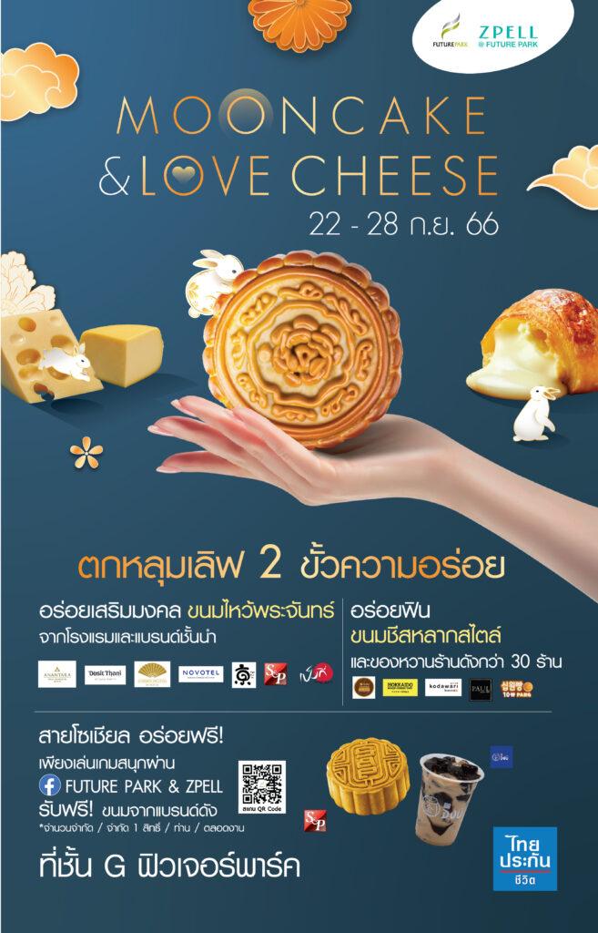 “Mooncake&LoveCheese” จัดขึ้นเพื่อเอาใจสายขนมหวาน รวมเฉลิมฉลองเทศกาลไหว้พระจันทร์ไปด้วยกัน มาที่เดียวได้ครบทุกรสหลากหลายแบรนด์จากร้านดัง แต่ละแบรนด์นอกจากรสชาติขนมไหว้พระจันทร์จะมีเอกลักษณ์อร่อยเฉพาะตัวแล้ว ยังดีไซน์กล่องใส่ขนม ทั้งสวยหรู และเก๋ไก๋น่าเก็บสะสม อาทิร้านดัง โรงแรมดุสิตธานี ขนมไหว้พระจันทร์แสนอร่อย ที่รังสรรค์อย่างประณีต ด้วยความตั้งใจในทุกขั้นตอน จนได้ขนมไหว้พระจันทร์ที่ลงตัวด้วยรสชาติและเอกลักลักษณ์เฉพาะที่ไม่เหมือนใคร โรงแรมโนโวเทล “ขนมไหว้พระจันทร์ คอลเลกชั่น 2023” ที่ทางโรงแรมคัดสรรเลือกวัตถุดิบอย่างดี รังสรรค์อย่างประณีตทุกขั้นตอนและเปี่ยมล้นไปด้วยความหมายอันเป็นสิริมงคล จากตัวไส้ขนมและบรรจุภัณฑ์ที่สื่อถึงสิริมงคล ให้คุณได้ส่งความปรารถนาดีผ่านขนมไหว้พระจันทร์ โรงแรมแมนดาริน โอเรียนเต็ล นำเสนอรสชาติพิเศษประจำปี นอกเหนือจากความอร่อยของไส้คลาสสิกตลอดกาลอย่าง ไส้คัสตาร์ด ไส้ลูกบัวรสเค็มและไข่แดง ไส้ทุเรียนและไข่แดง สำหรับรสชาติใหม่! ประจำปีนี้คือ ไส้น้ำผึ้งลูกหม่อนออร์แกนิก ซึ่งใช้น้ำผึ้งลูกหม่อนออร์แกนิกจากฟาร์มในจังหวัดเพชรบูรณ์และชัยนาท เป็นต้น นอกจากนี้ยังได้ฟินไปกับขนมชีสหลากสไตล์ กับร้าน HOKKAIDO BAKED CHEESE TART, เจปัง ทาโร่ชีส, PAUL, kodawari โค-ดา-วา-ริ เป็นต้น และของหวานร้านดังกว่า 30 ร้าน สายโซเชี่ยลอร่อยฟรี ! เพียงร่วมเล่นเกมผ่านเพจ Future Park & Zpell รับฟรี ขนมจากแบรนด์ดัง *จำนวนจำกัด